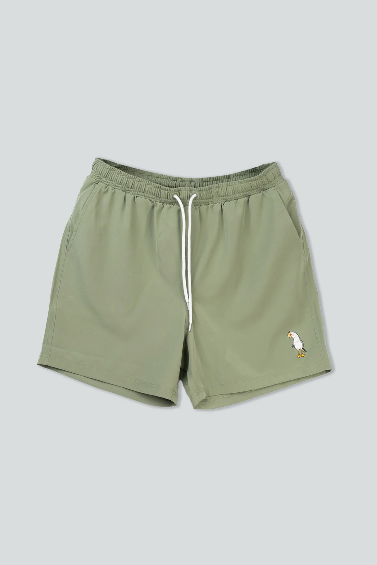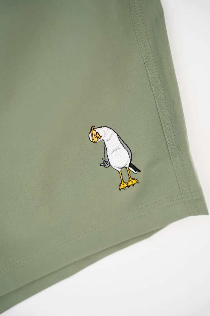 Badeshortsene er broderet med ikonet Mini flipping bird.