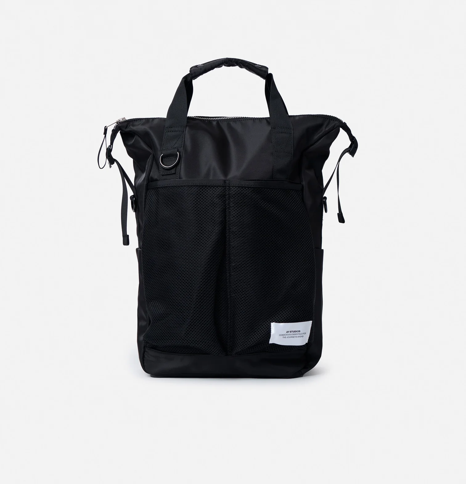 ‘Backpack’ fra Ay Studios er den ultimative hverdags- og rejserygsæk fyldt med funktioner og med et flot udseende. Denne taske er skabt i en vandafvisende kvalitet med kraftige holdbare lynlåse. Her ses den i den sorte farve kaldet ‘Black’.