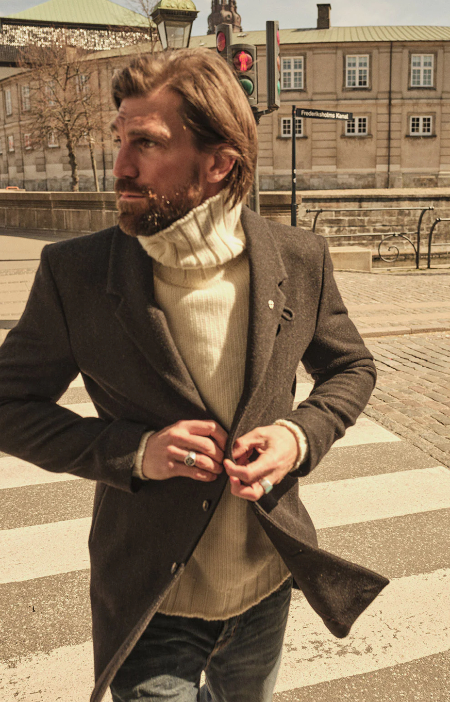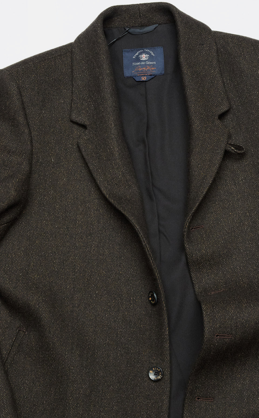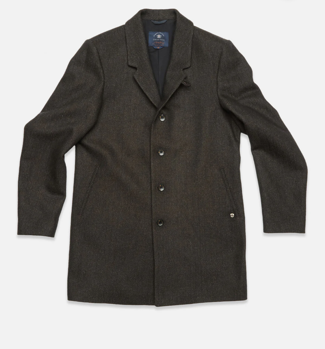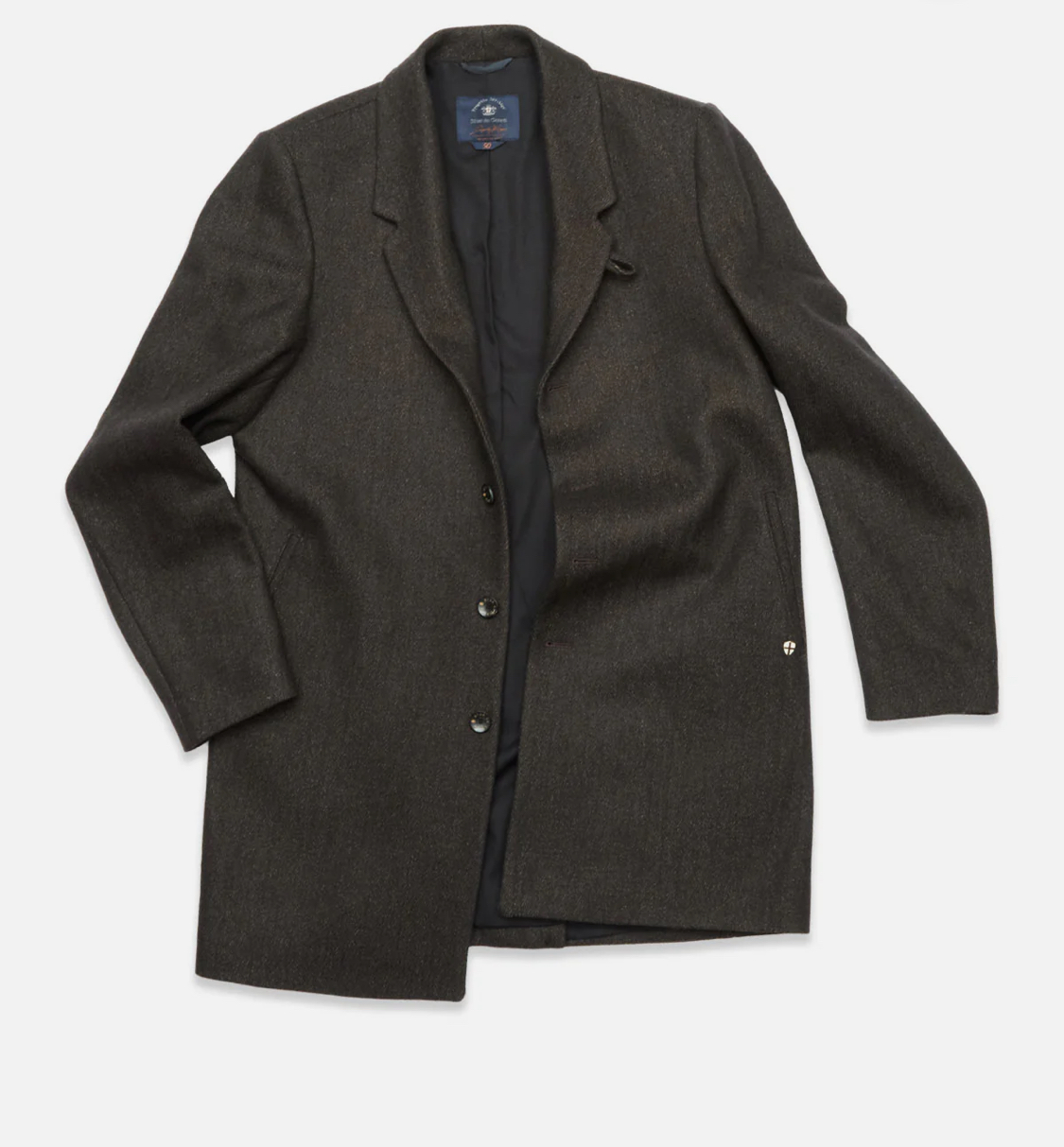 Massi Coat er skåret som en klassisk frakke og lavet af en varm uldblandingskvalitet med en subtil sildebensvævning.