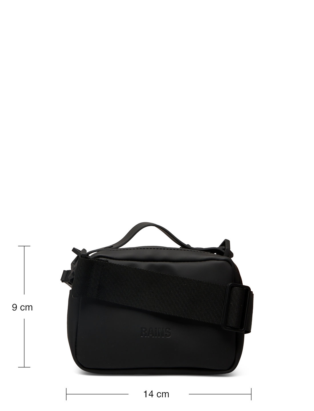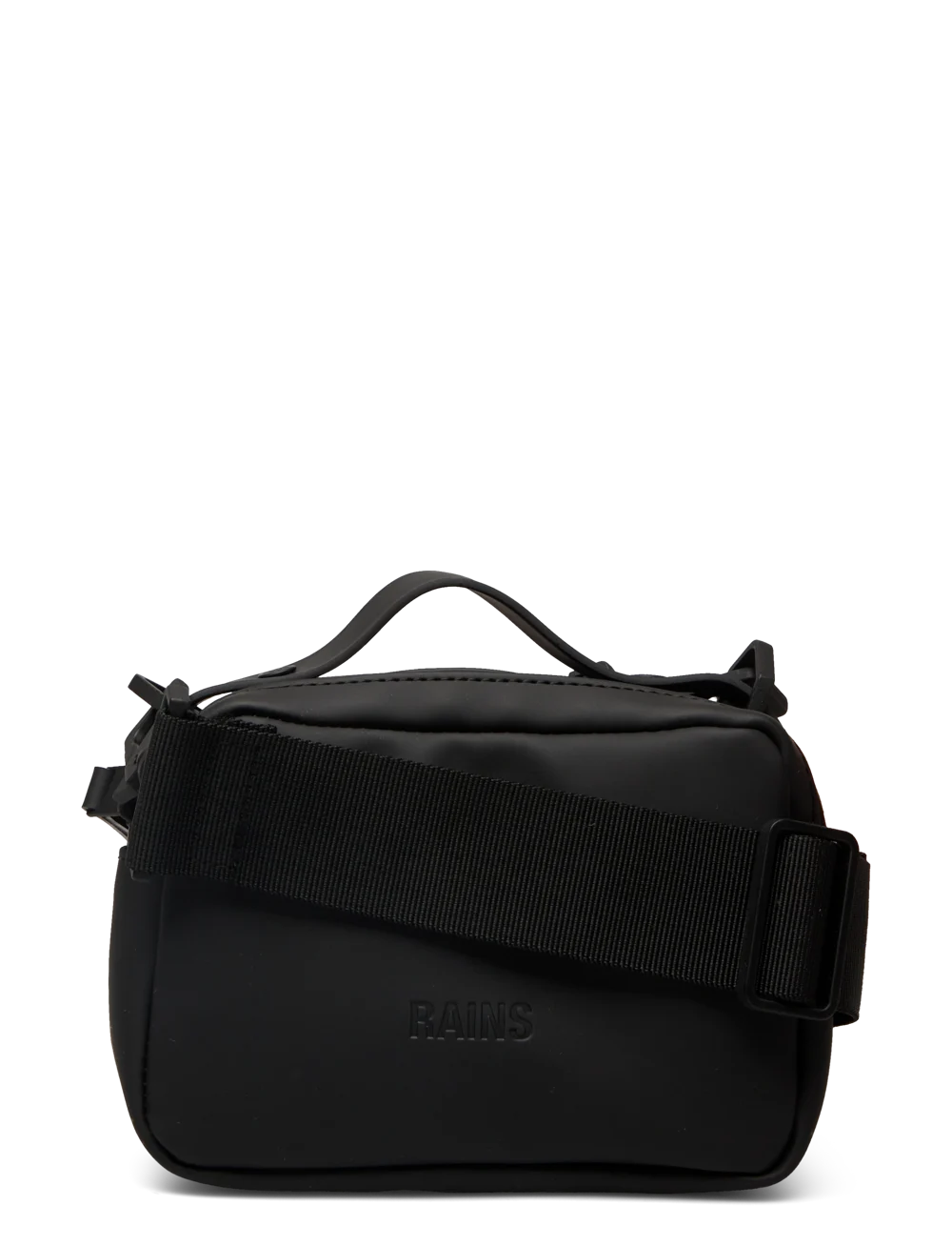 Box Bag Micro er fremstillet i Rains' vandtætte signatur PU-materiale, som er designet til at være stærkt og holdbart med en glat finish.