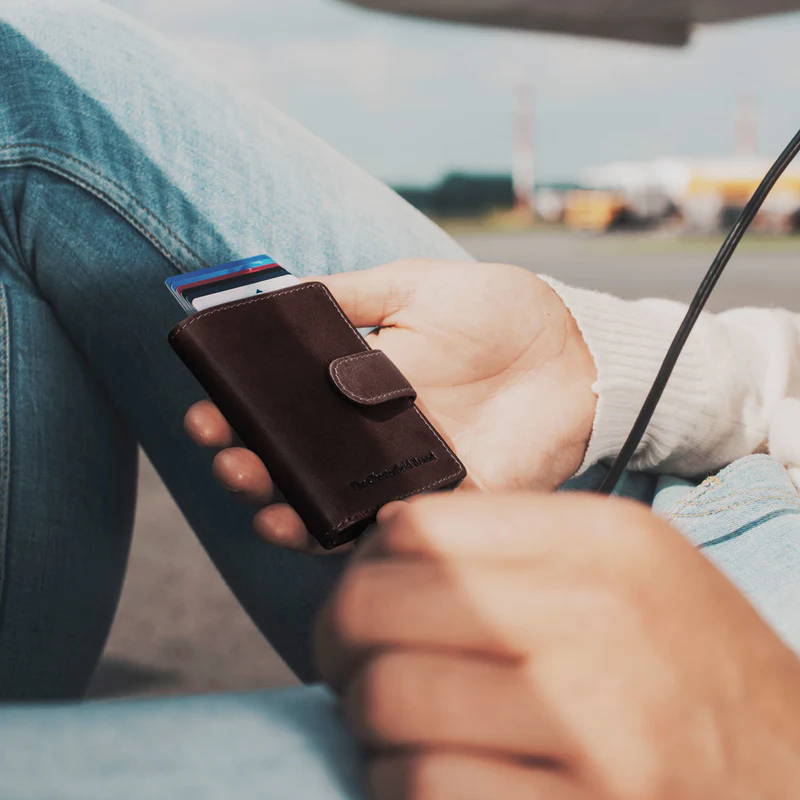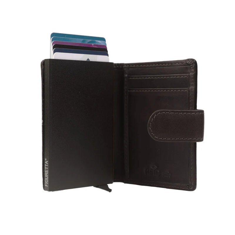 Chesterfield Brand Loughton - kortpungens kerne er lavet af solid aluminium og er udstyret med den nyeste RFID-beskyttelse. RFID-beskyttelsen sikrer, at tyve ikke kan læse dine kort på afstand gennem pungen.