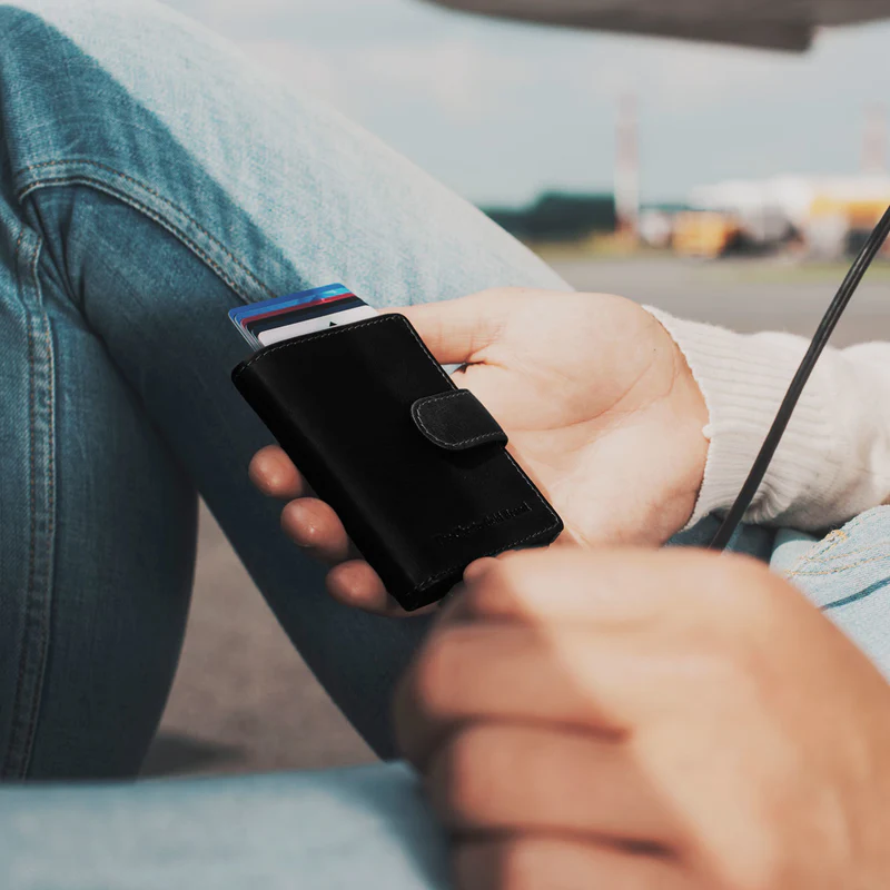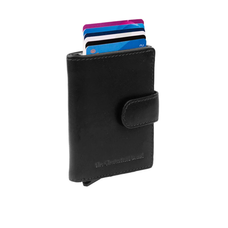 Chesterfield Brand Loughton - kortpungens kerne er lavet af solid aluminium og er udstyret med den nyeste RFID-beskyttelse. RFID-beskyttelsen sikrer, at tyve ikke kan læse dine kort på afstand gennem pungen.