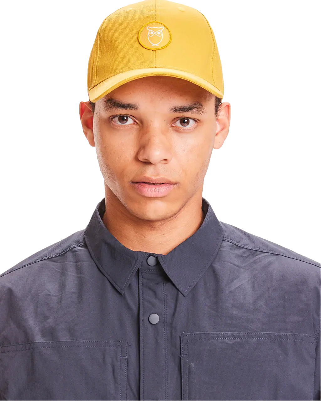 Baseballkasket fra Knowledge Cotton i twill lavet af økologisk bomuld.