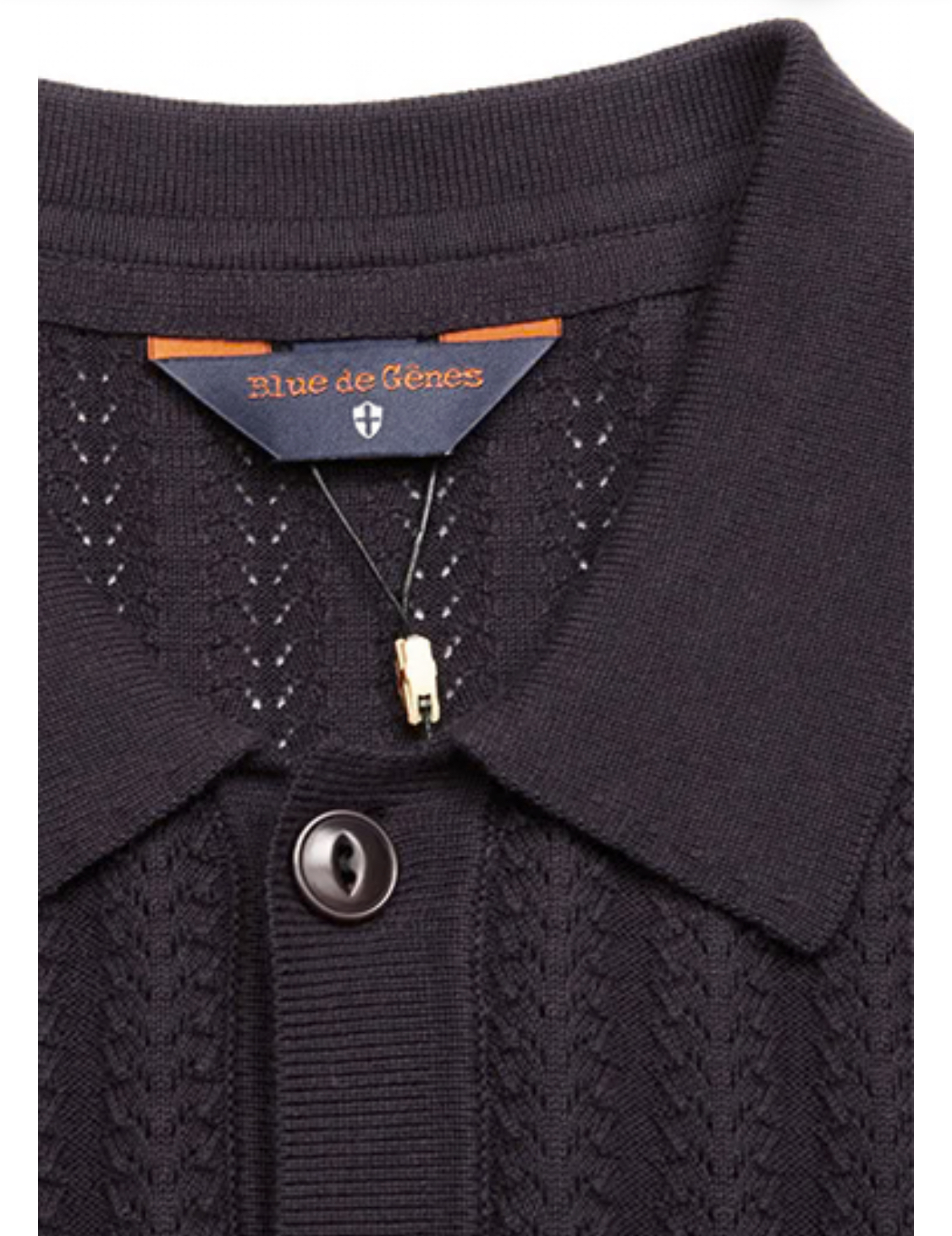 Strikket polo fra Blue de Gênes i en dyb navy farve.
