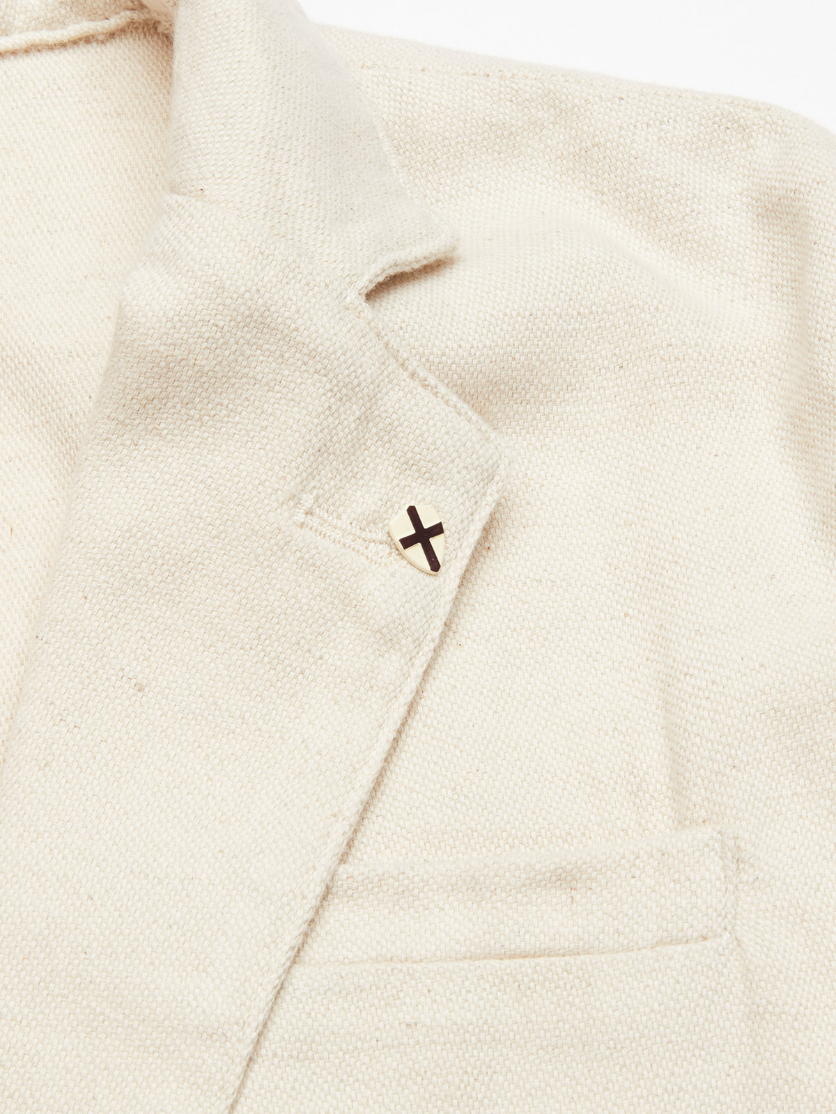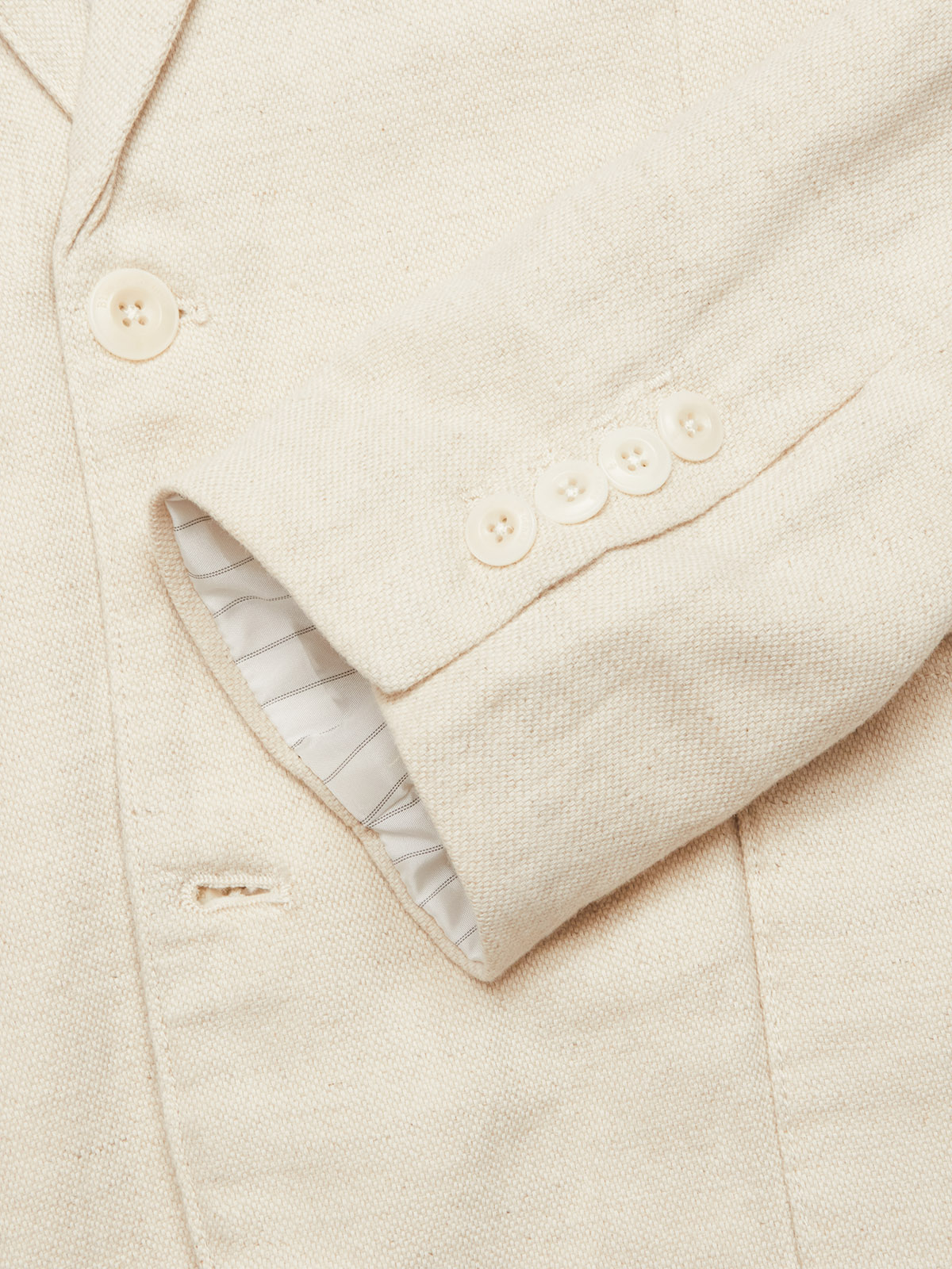 Den er delvist foret og fremstillet i en blød bomulds-/hørblanding. Perfekt til de kommende sommerfester.