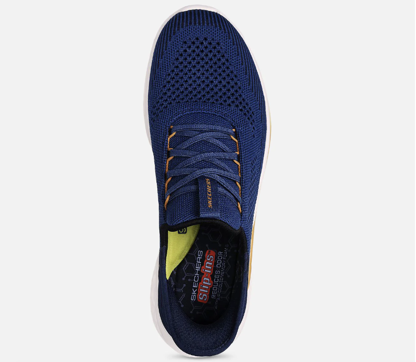 Overdelen er med elastikbånd og en Skechers Air-Cooled Memory Foam komfort indersål, der gør dem åndbare samtidig med de tilpasser sig foden og er lækre bløde.