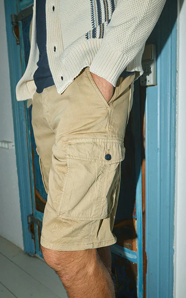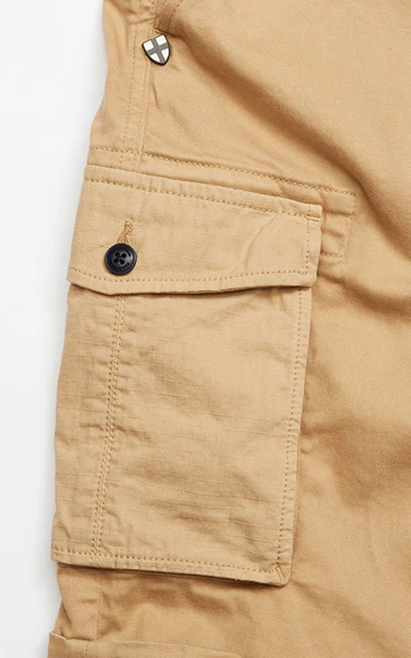 Løstsiddende cargoshorts fremstillet af et komfortabelt militært bomuldssatinstof med ripstop-bæltestropper og praktiske sidelommer.