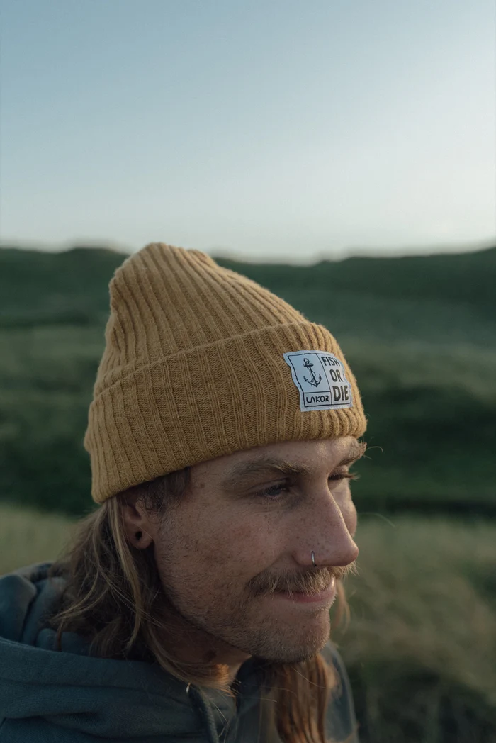 Fish or Die Beanies i 50% Genanvendt Polyester, 37% Polyester, 10% Uld, 3% Spandex.