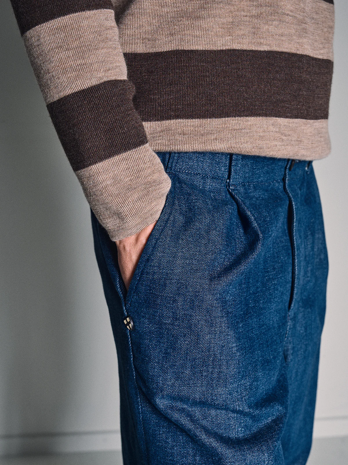 En tidløs stribet strik fra Blue de Genes med et klassisk design.