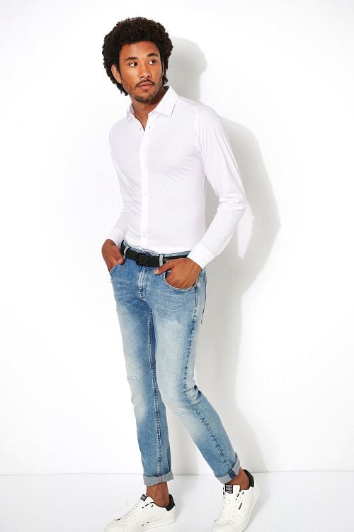 Desoto skjorte Non-Iron jersey hvid har en slimfit pasform og skjorten er af strygefri bomuld, hvilke gør den nem at have med at gøre.