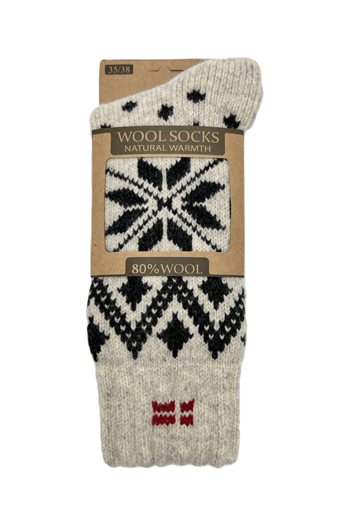 Bløde og kraftige ragsokker af 80% uld med lille strikket dansk flag fra WOOLWEAR of Scandinavia.
