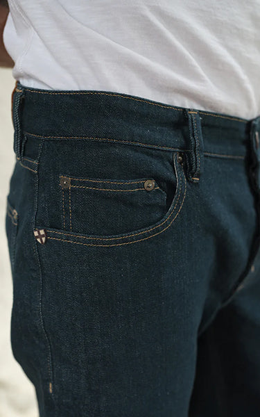 Komfort stretch Denim som giver fleksibilitet og nem bevægelse samtidig med, at det robuste udseende af traditionel denim bevares.