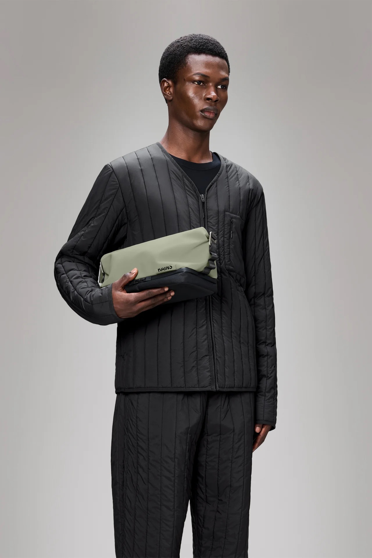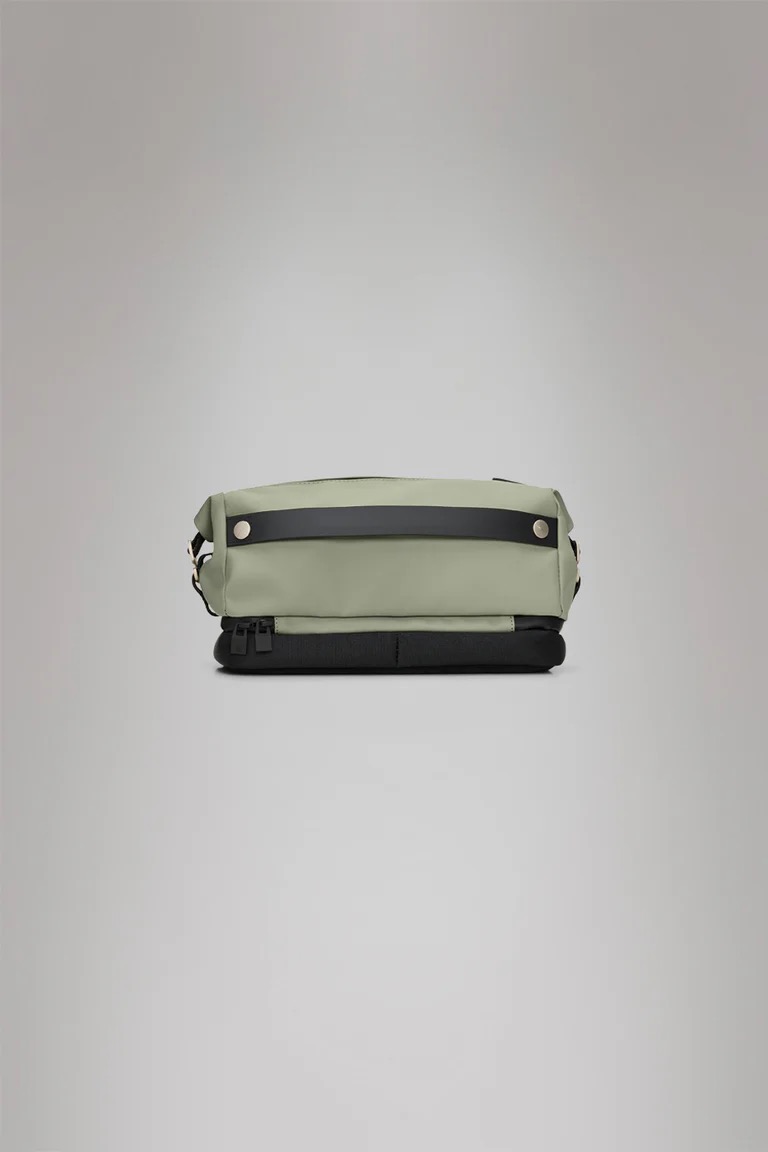 Otaru Wash Bag er fremstillet af en blanding af Rains' signatur vandtætte PU-stof og vandtæt vævet polyester, der er udviklet med henblik på slidstyrke, holdbarhed og en blød fornemmelse.
