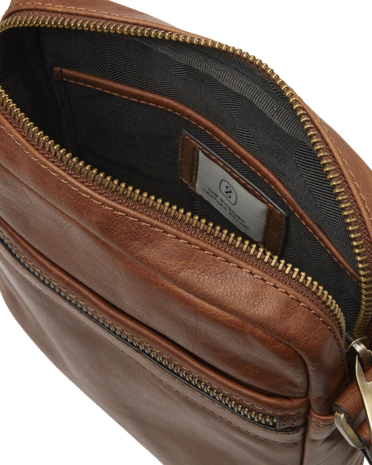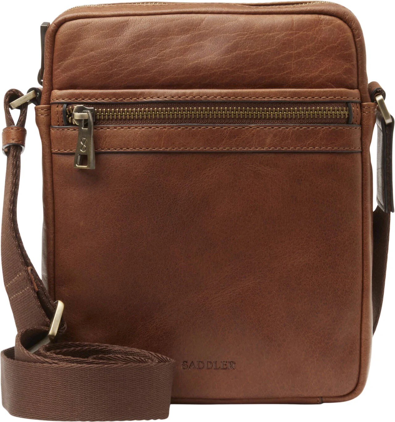 Skuldertaske model Valle fra Saddler. Tasken er produceret i lækkert bøffellæder og der er justerbar skulderrem i textil.