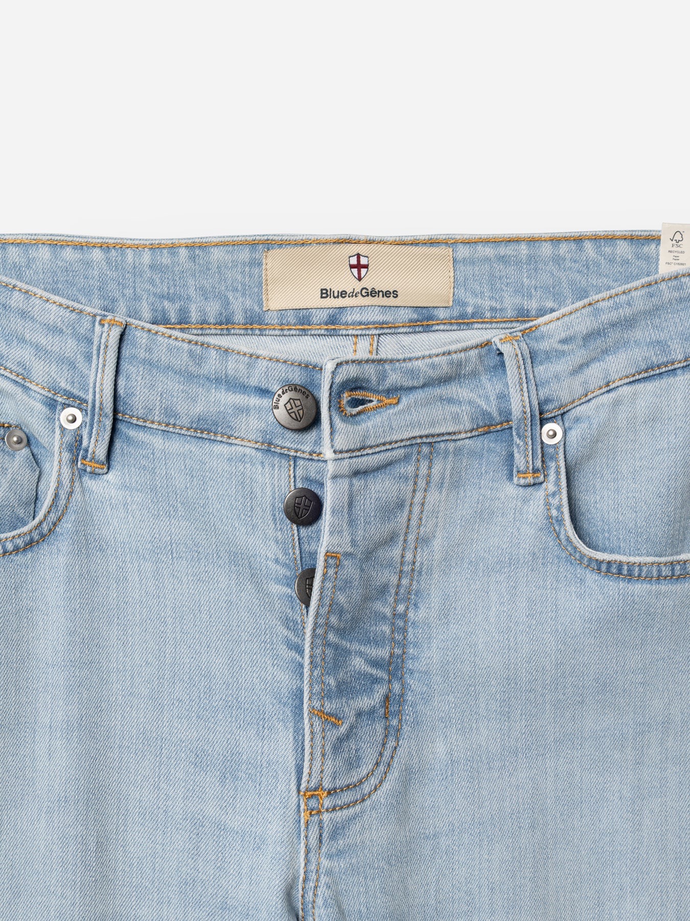 Jeansene har normal pasform med let tilspidsede ben, og en behagelig stretchdenim som giver dem fleksibilitet og bevægelsesfrihed. Knapgylp med knapper med logo for en klassisk og slidstærk finish. Historien om Vinci, opkaldt efter den berømte Leonardo da Vinci, er trykt på lommeforet, hvilket giver et unikt og personligt præg.