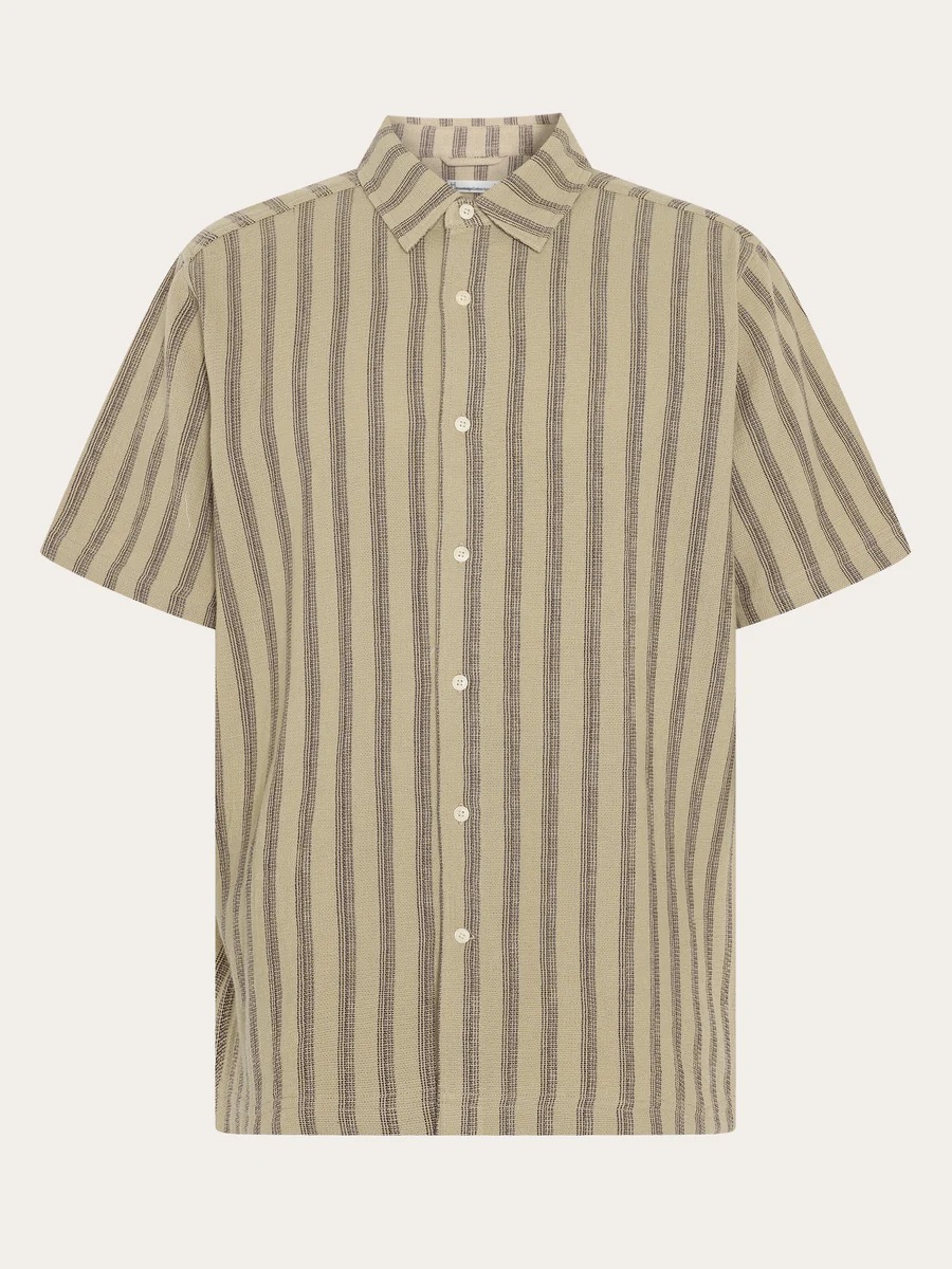 Knowledge Cotton Relaxed stripe short sleeve - beige stripe 1090163