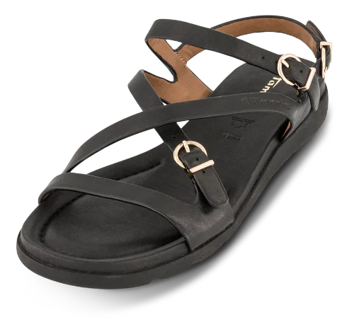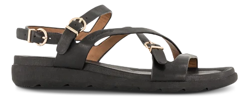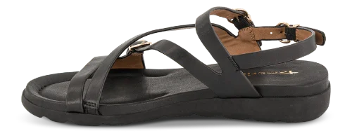 Sandalen har et stilrent design med feminine remme, som giver et moderne og let udtryk. Den klassiske sorte farve gør modellen nem at kombinere med både kjoler, bukser og sommerlige outfits.