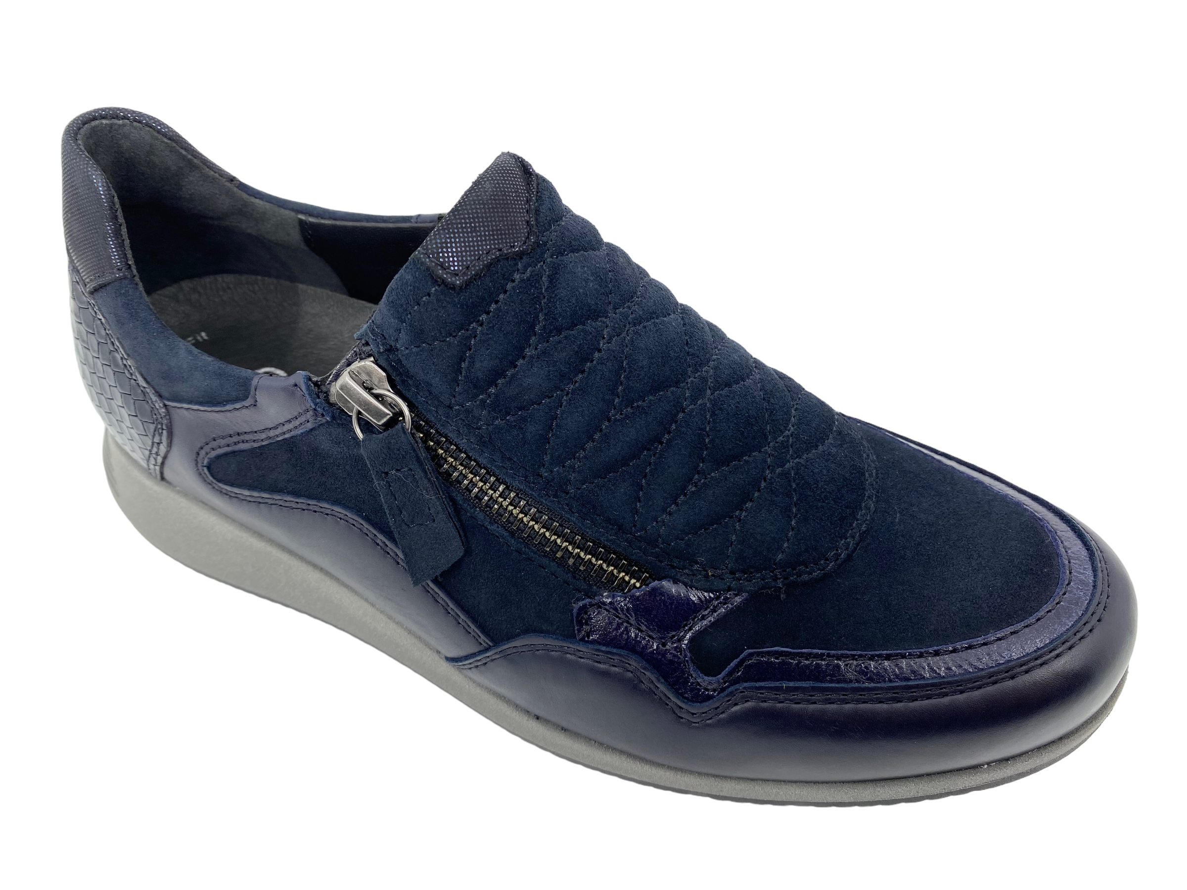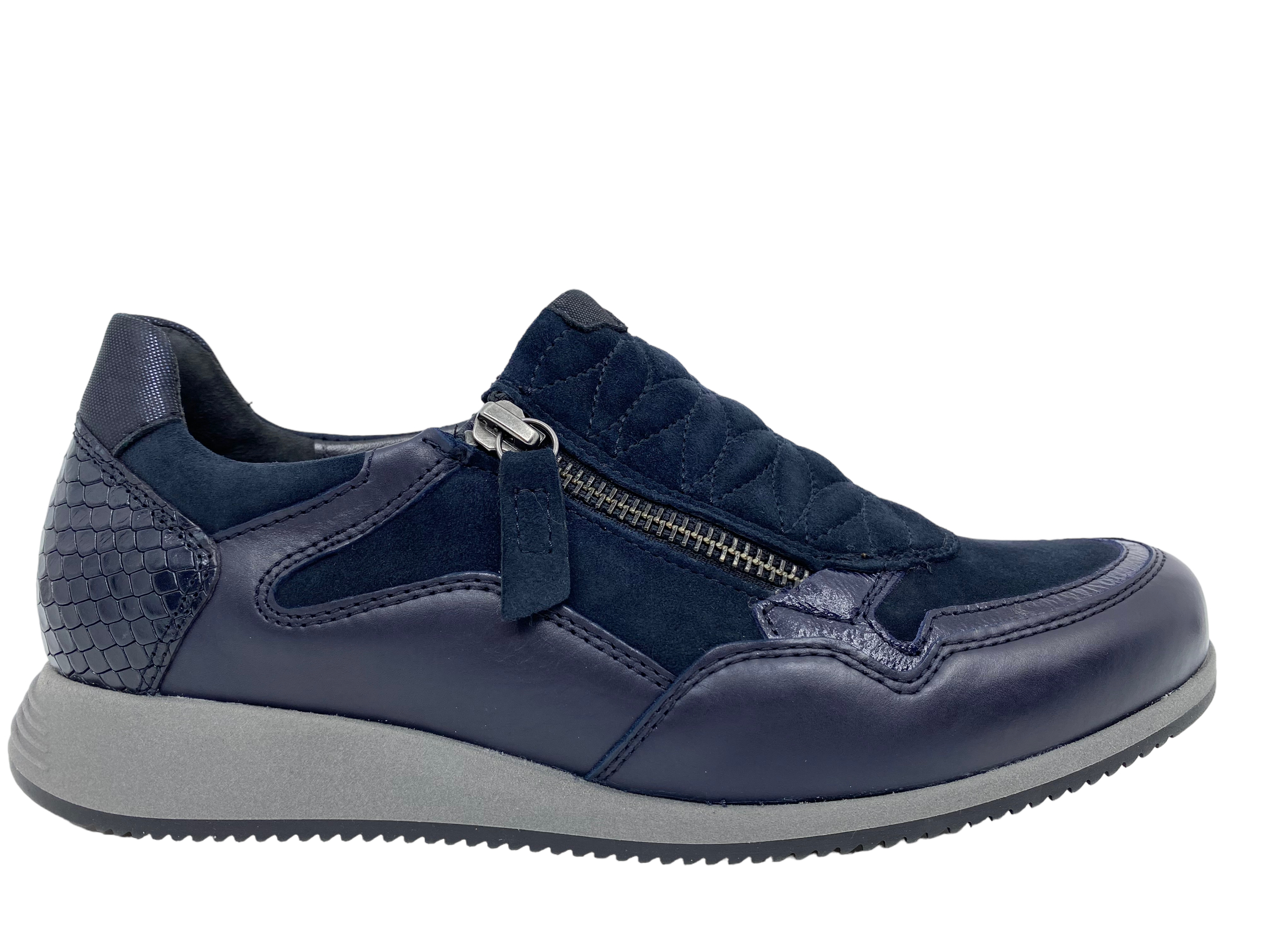 Sneakers fra Gabor, som er nemme at komme i og af, da der er lynlås på siden. De er lavet i vidde G, hvilket betyder ekstra vidde. Man kan endda tage den ene indlægssål ud, så der er endnu mere plads i skoen - hvis man evt. skal have plads til sin egen indlægssål.
