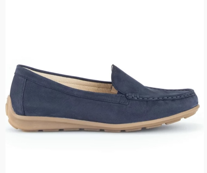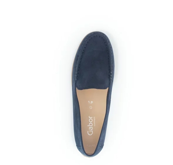 Komfortable loafers fra Gabor. Lavet i blødskindkvalitet. Denne model er i en vidde G, som betyder den er bredere end en almindelig læst. Der er mulighed for at lave ekstra plads i denne loafer ved at tage den ene indlægssål ud.