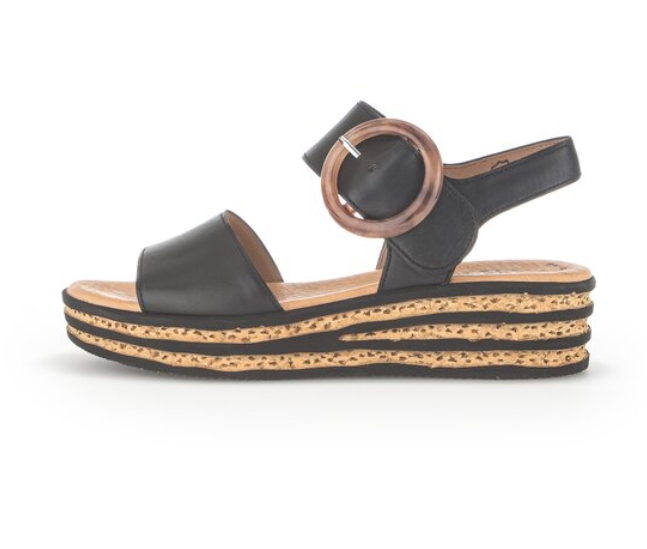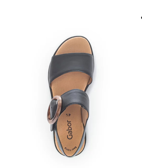Smart sandal fra Gabor - i flot sort skind. Lavet med blød indersål, samt blød skindkvalitet. Perfekt til sommerkjole eller dine yndlingsjeans.