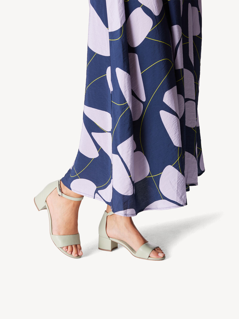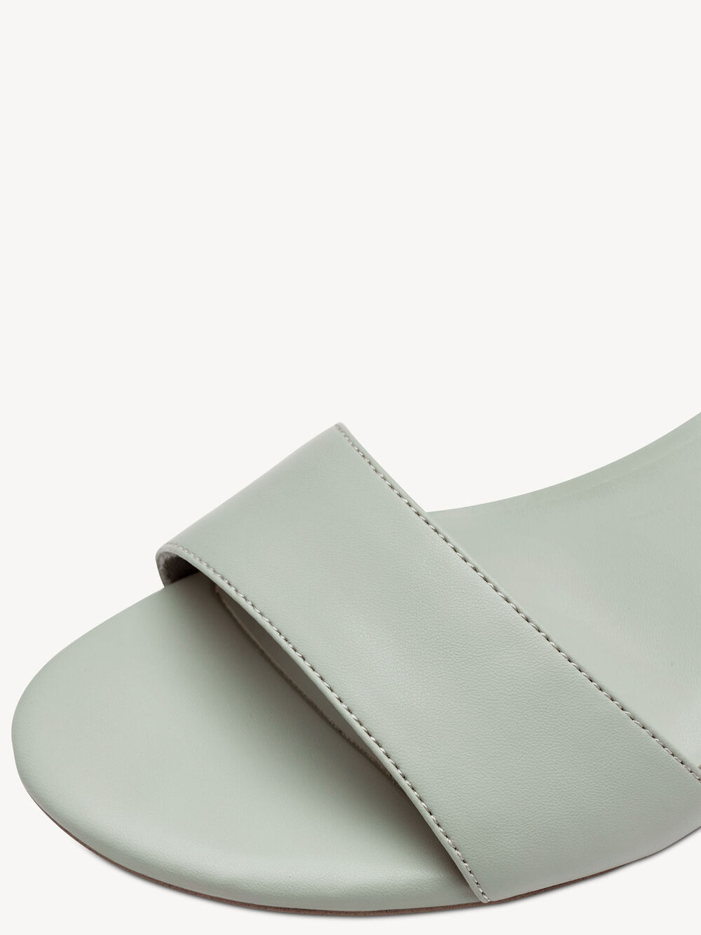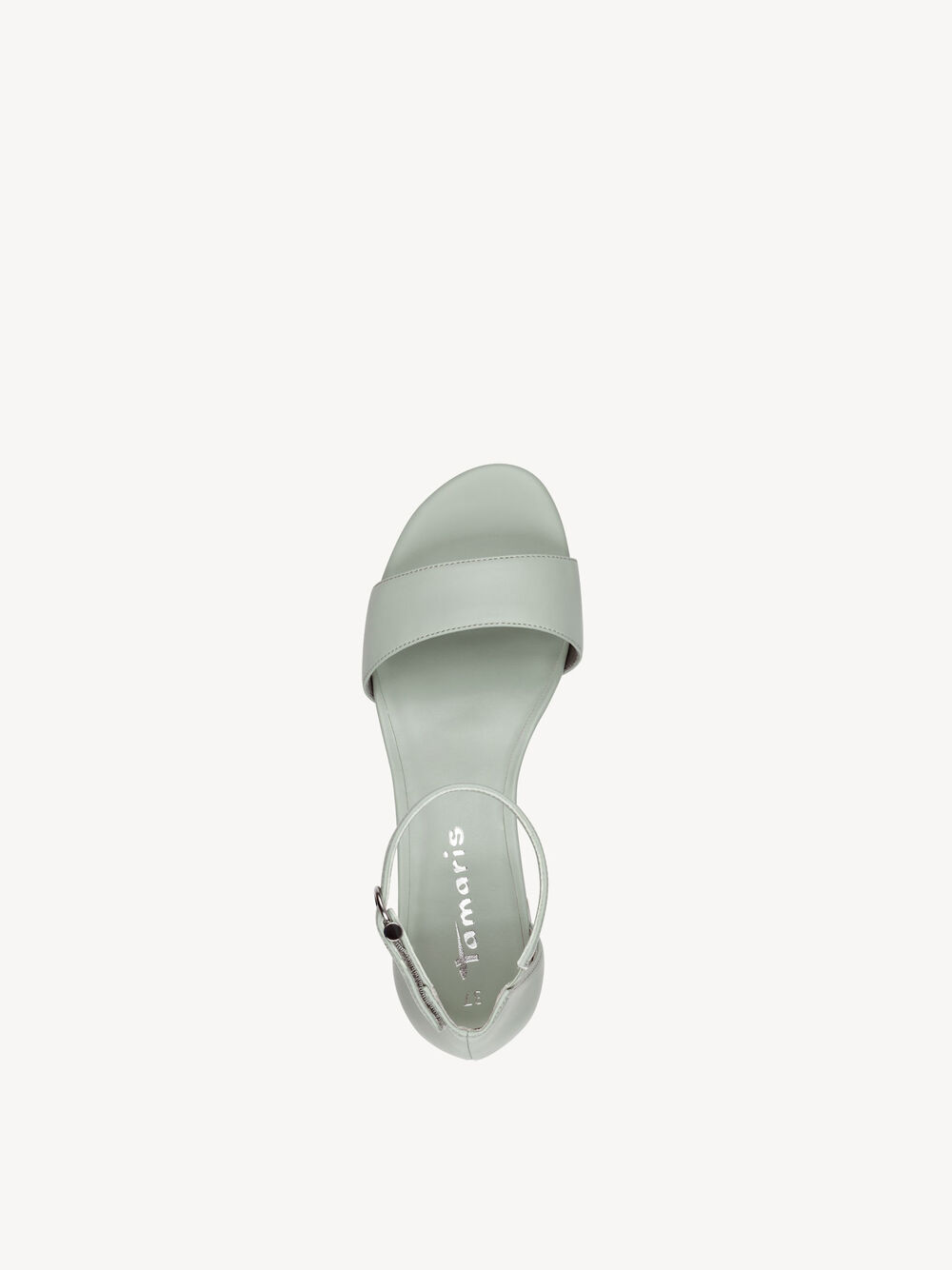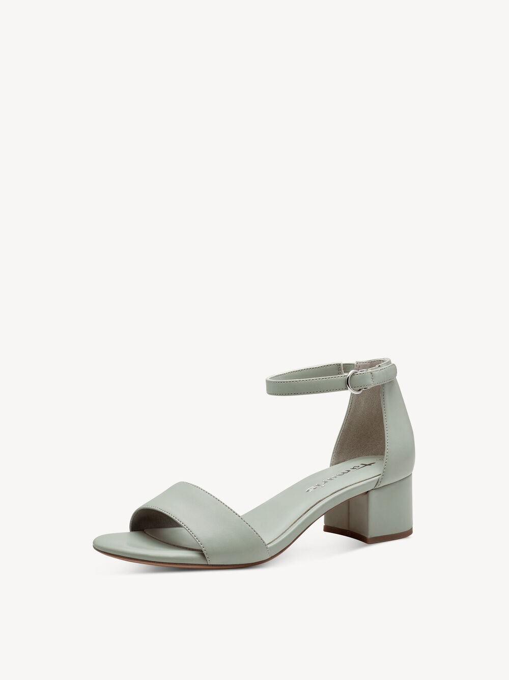 Flot og enkel sandal i lysegrøn fra Tamaris - m. 5 cm hæl. Modellen har lukket hælkappe og spændes om anklen med velcro (som ligner et flot spænde), så den er nem at komme i/af. Perfekt til både kjole og dine yndlingsjeans.