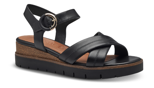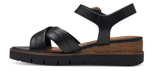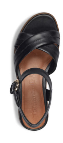 Smarte sorte sandaler fra Tamaris - m. 5 cm kilehæl. Lette at komme i/af m. velcrolukning. Perfekte til dine yndlingsjeans eller kjole.