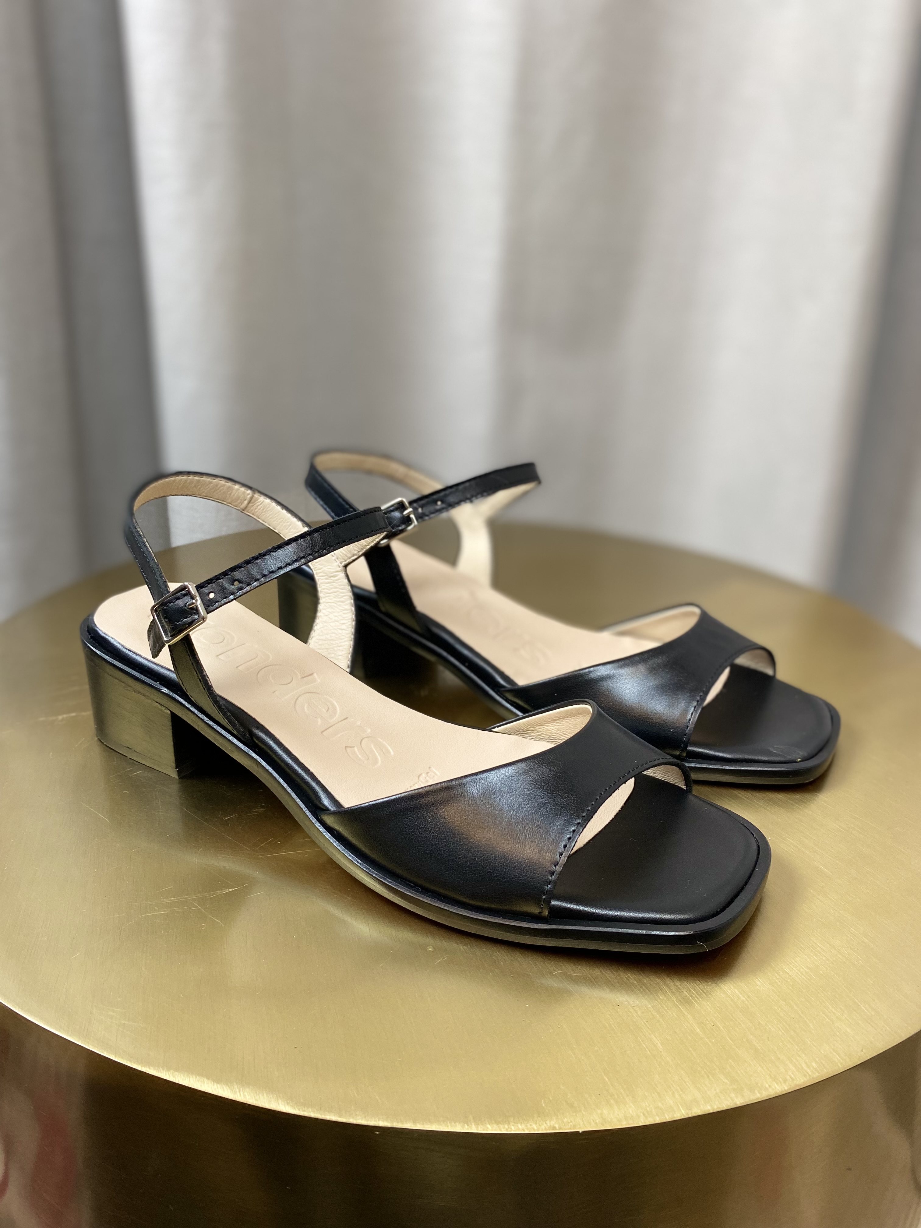 Elegante sandaler i sort fra Wonders - m. 4 cm hæl. Justerbare ankelrem m. spænde. Perfekte til kjole eller dine yndlingsjeans.
