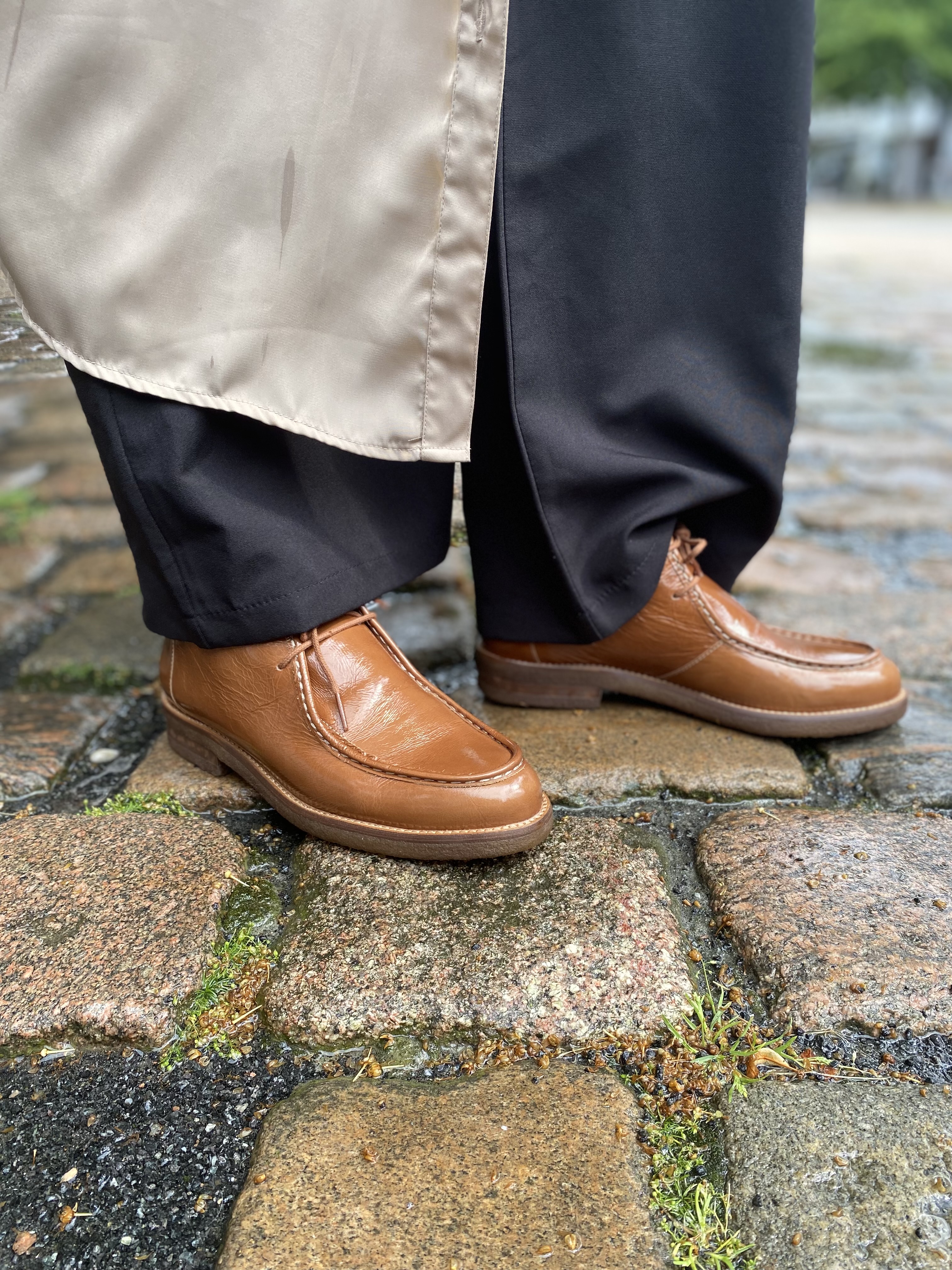 Håndlavet flot støvlette med snørebånd, udført i lysebrunt skind lak med rundet snude. Støvletten er dekoreret med syninger rundt langs fronten. Modellen sidder flot på de fleste og har en skøn pasform. Modellen er lavet med bløde rågummi såler - som sikre komfort og god stødabsorbering.