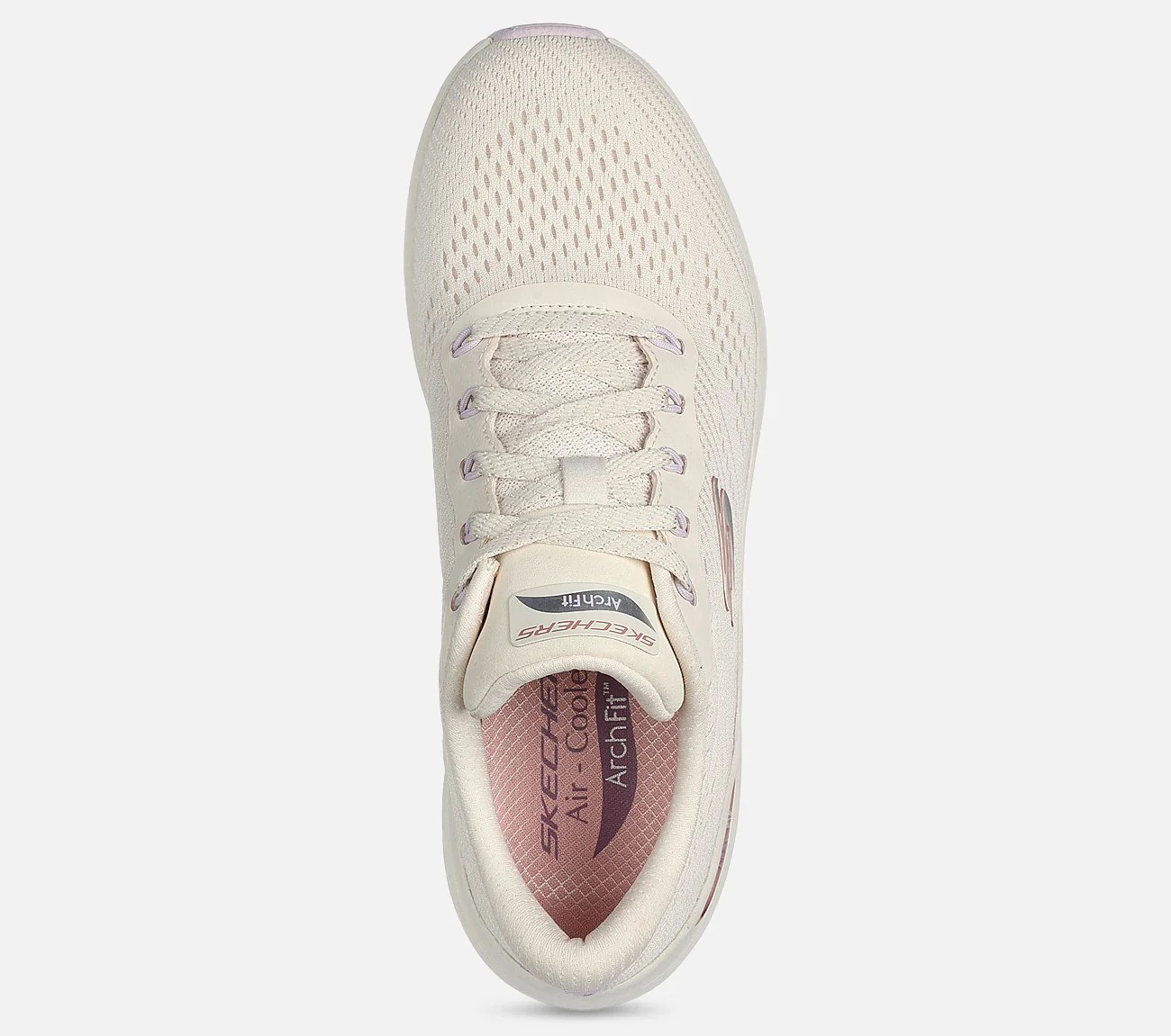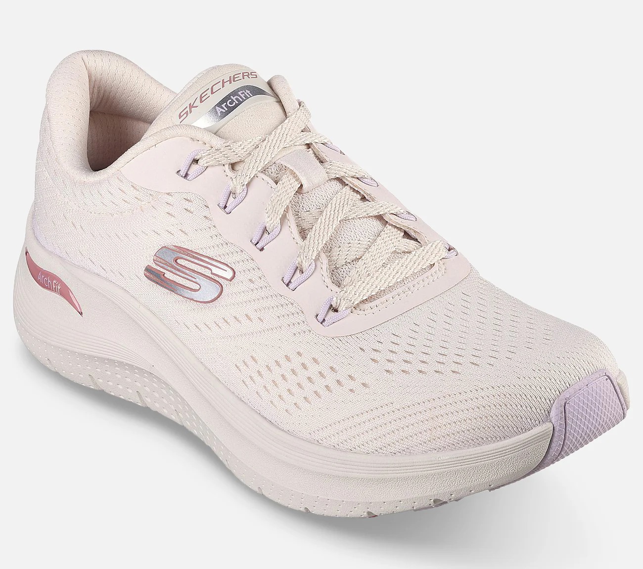 Skoene har en lyserød Arch Fit sål, som er lavet til folk som går meget eller dyrker sport.