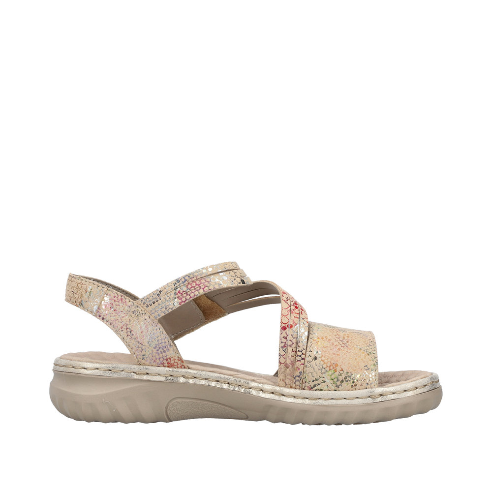 Nyd sommerens skridt med dine fødder i denne pæne Rieker sandal, der fletter enestående komfort og design sammen.