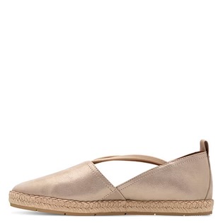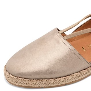 Rigtig fin og sød espadrille sko i blød nubuck med "guld effekt". Der er to elastikker, som sørger for at holde foden på plads, imens en kile på indersiden giver god støtte. Touch-It indersålen er blød og komfortabel. Indersålen er i blødt skind, som sikre godt klima i skoen hele dagen. Ydersålen er stødabsorberende med et godt fodfæste.