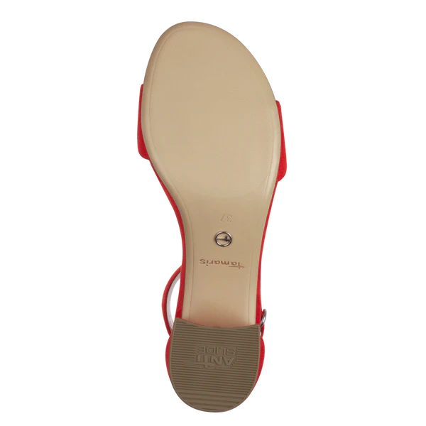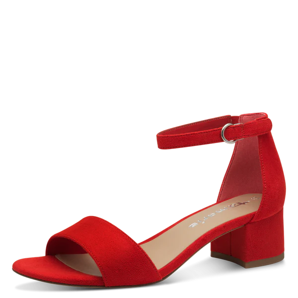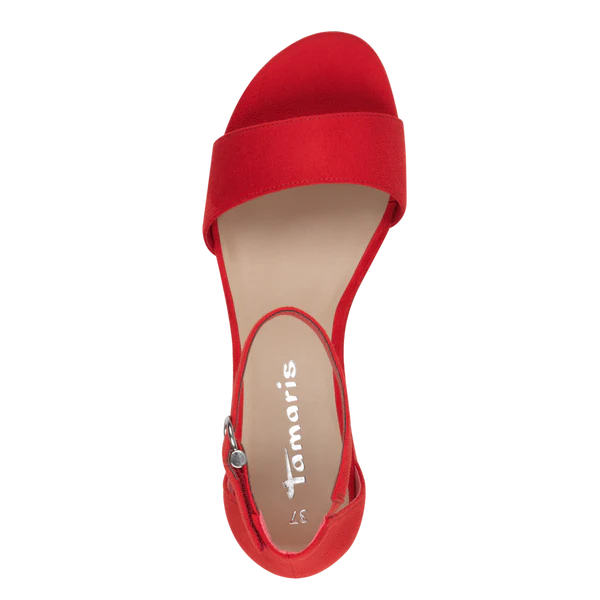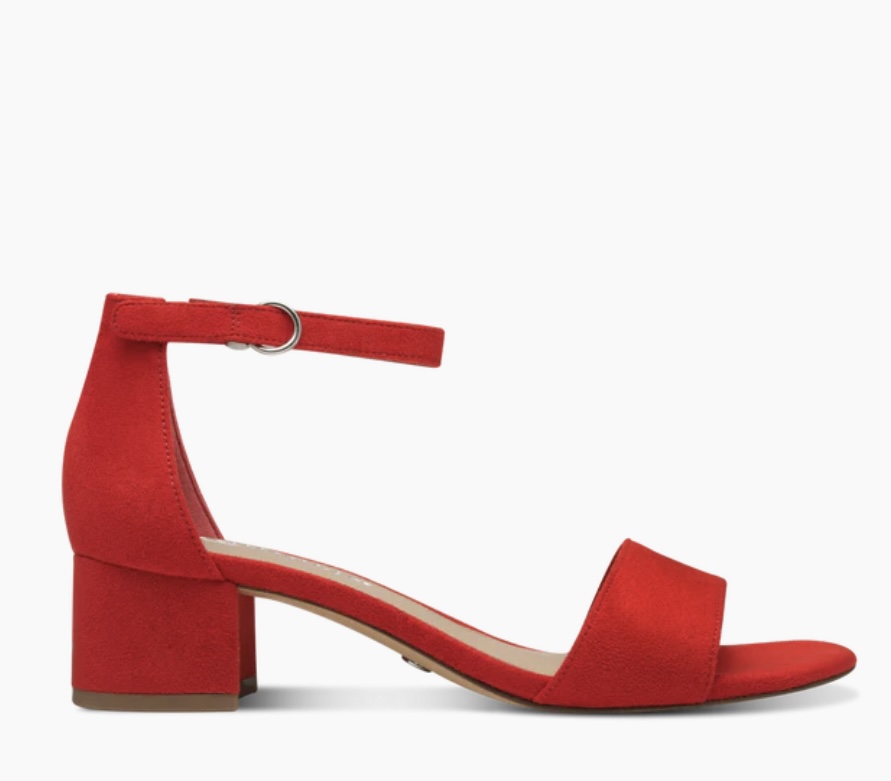 En klassisk sandal fra Tamaris i den smukkeste røde farve, som vi i den grad kommer til at se på foråret og sommeren. Trænger din garderobe til et frisk pust, så er den røde farve måden at gøre det på.