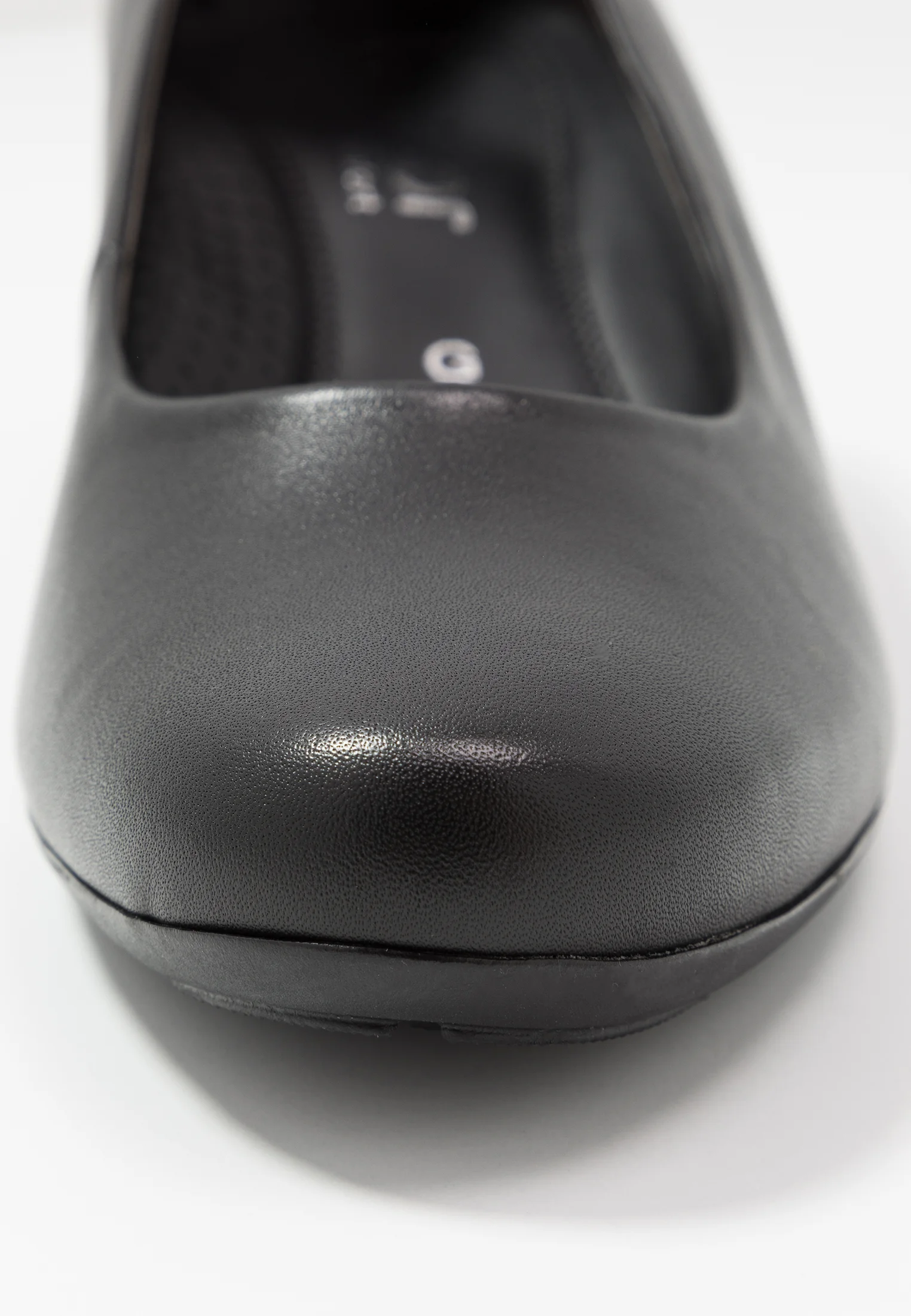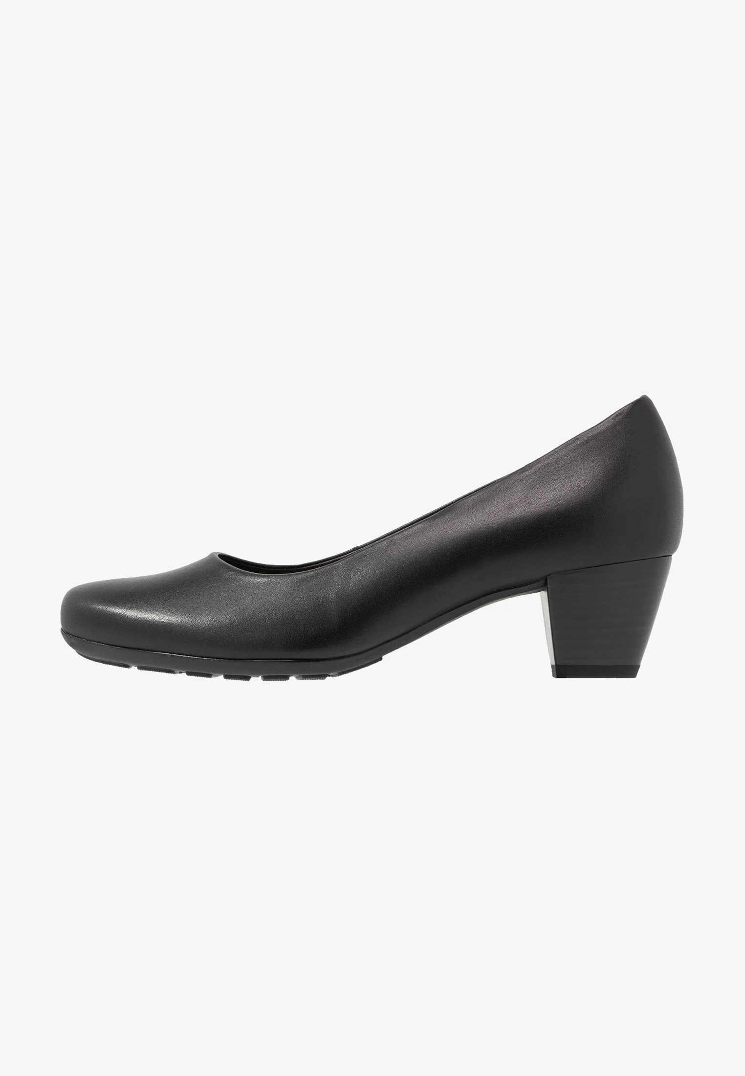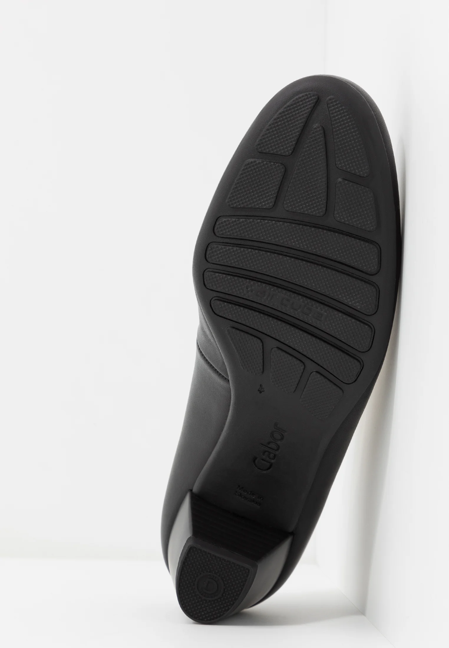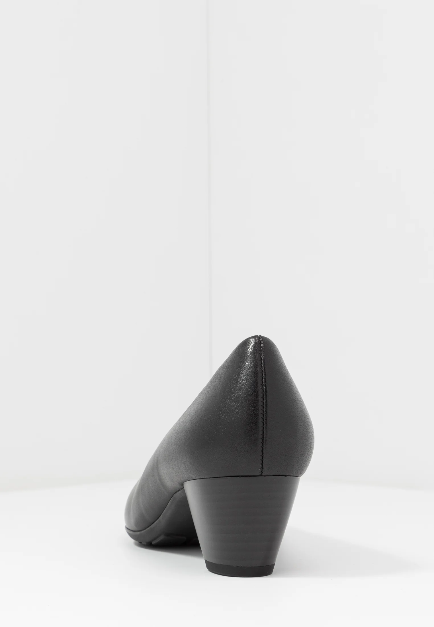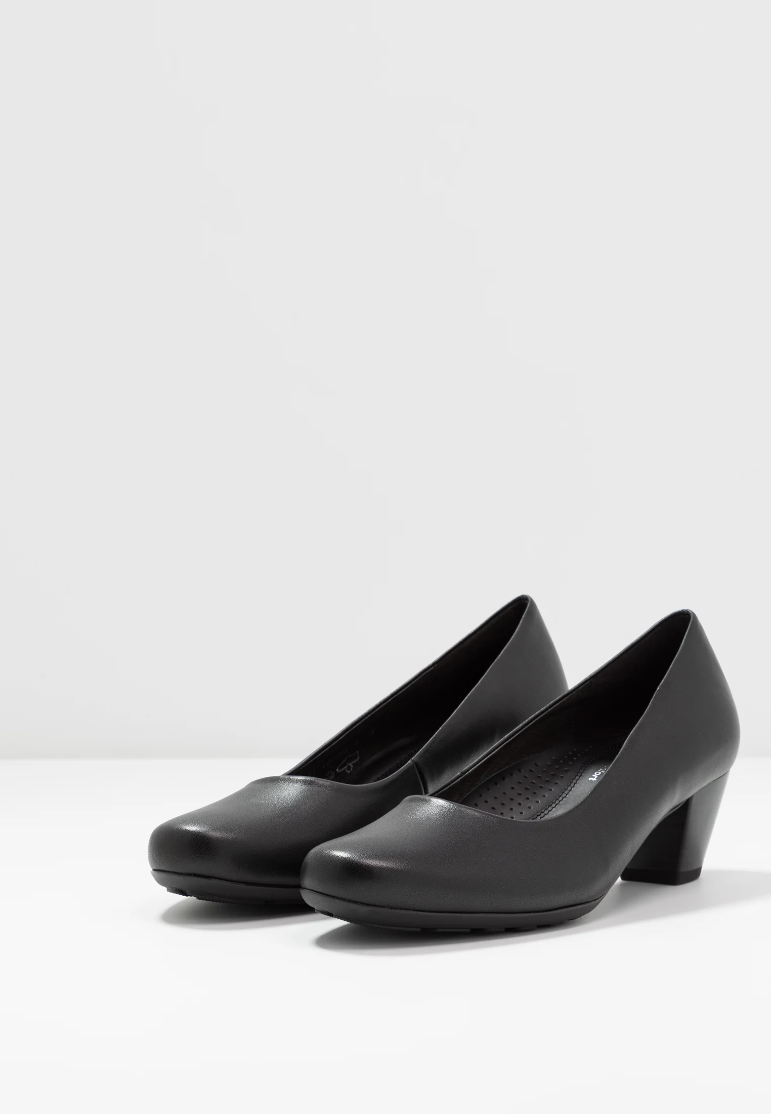 Klassisk sort skind pump med god comfort vidde G ekstra plads til tæerne og sort gummi sål.
