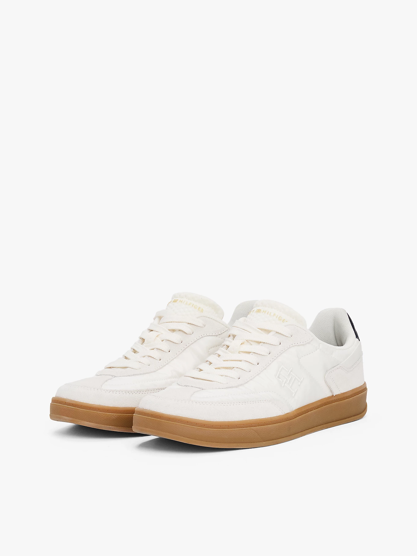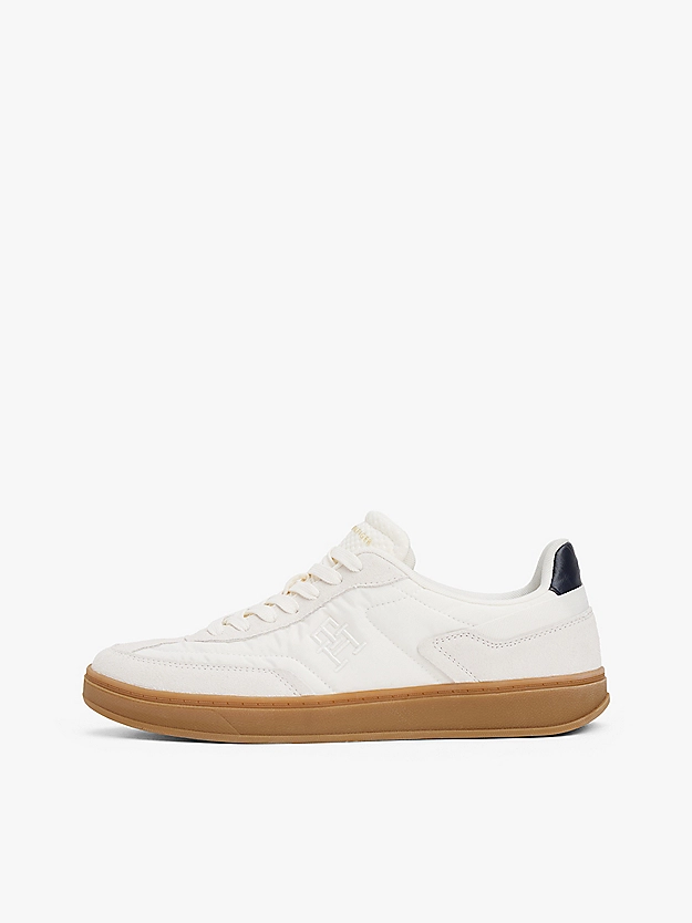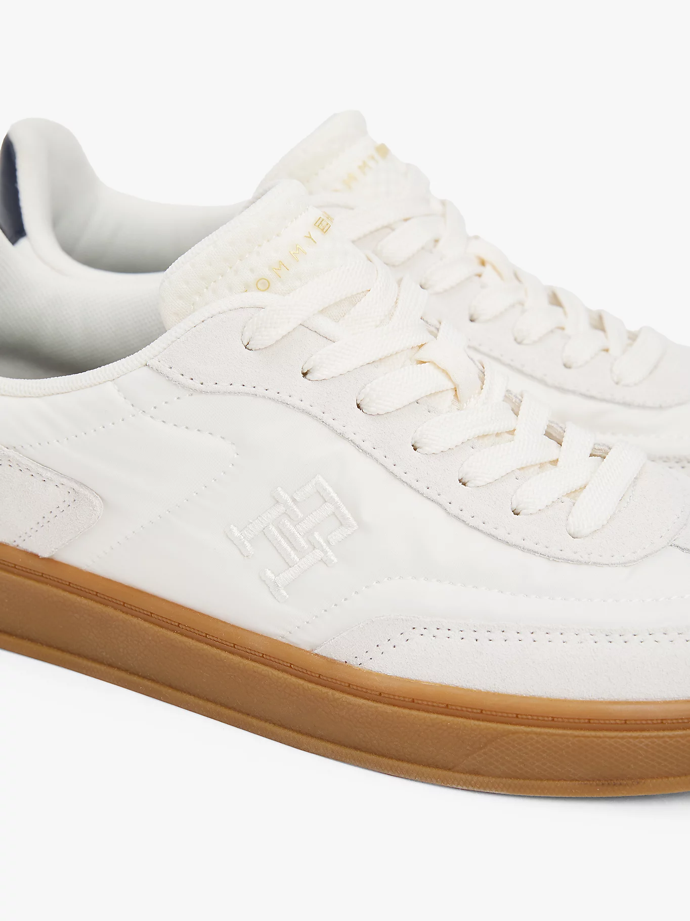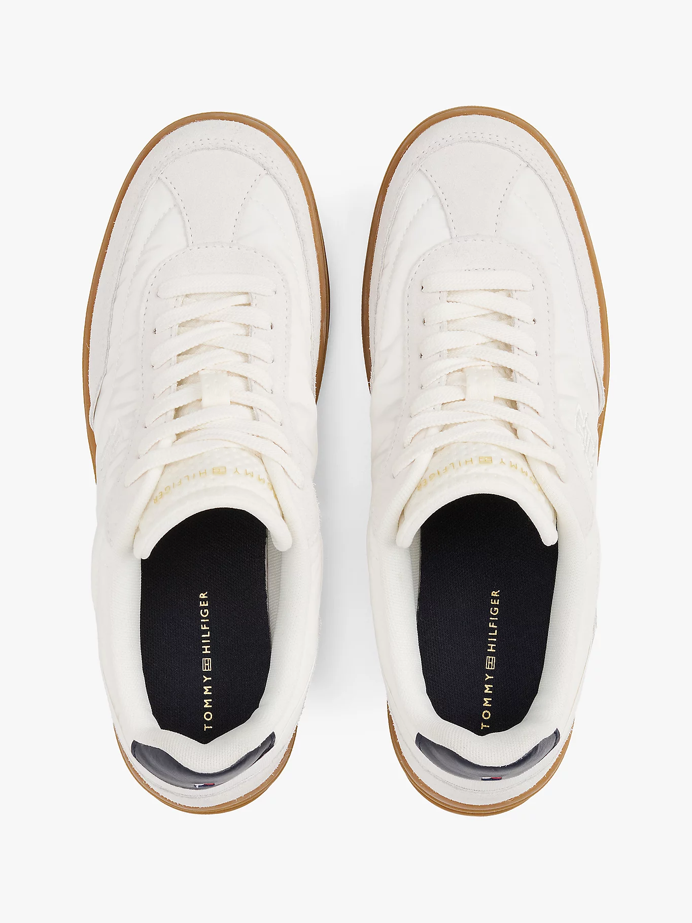Nyhed fra Tommy Hilfiger - En skøn retro low-top sneakers i bedste vintage inspireret stil. Modellen er lavet med fine detaljer i lyse farver. Sålen er honningfarvet og god kontrast til den lyse overdel, som er fra "håndbold sko looket" og med ikoniske Tommy Hilfiger detaljer. Modellen er normal i str.