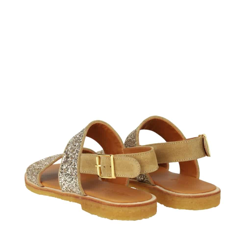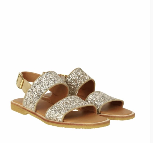 Denne smukke sandal forener stil og komfort med sine elegante remme med guld glimmer.