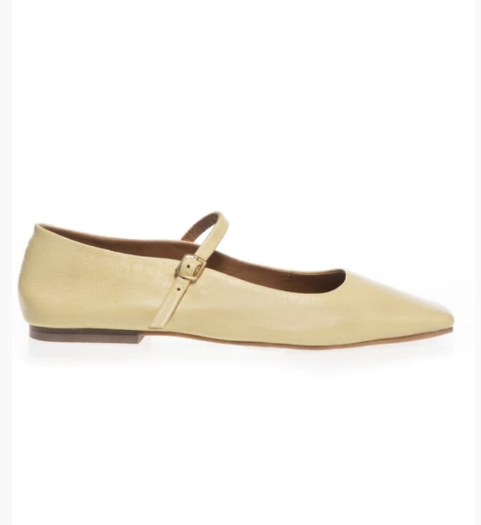 En elegant ballerina i skind, i en super flot solgul nuance, der tilføjer et friskt pust til din skosamling.