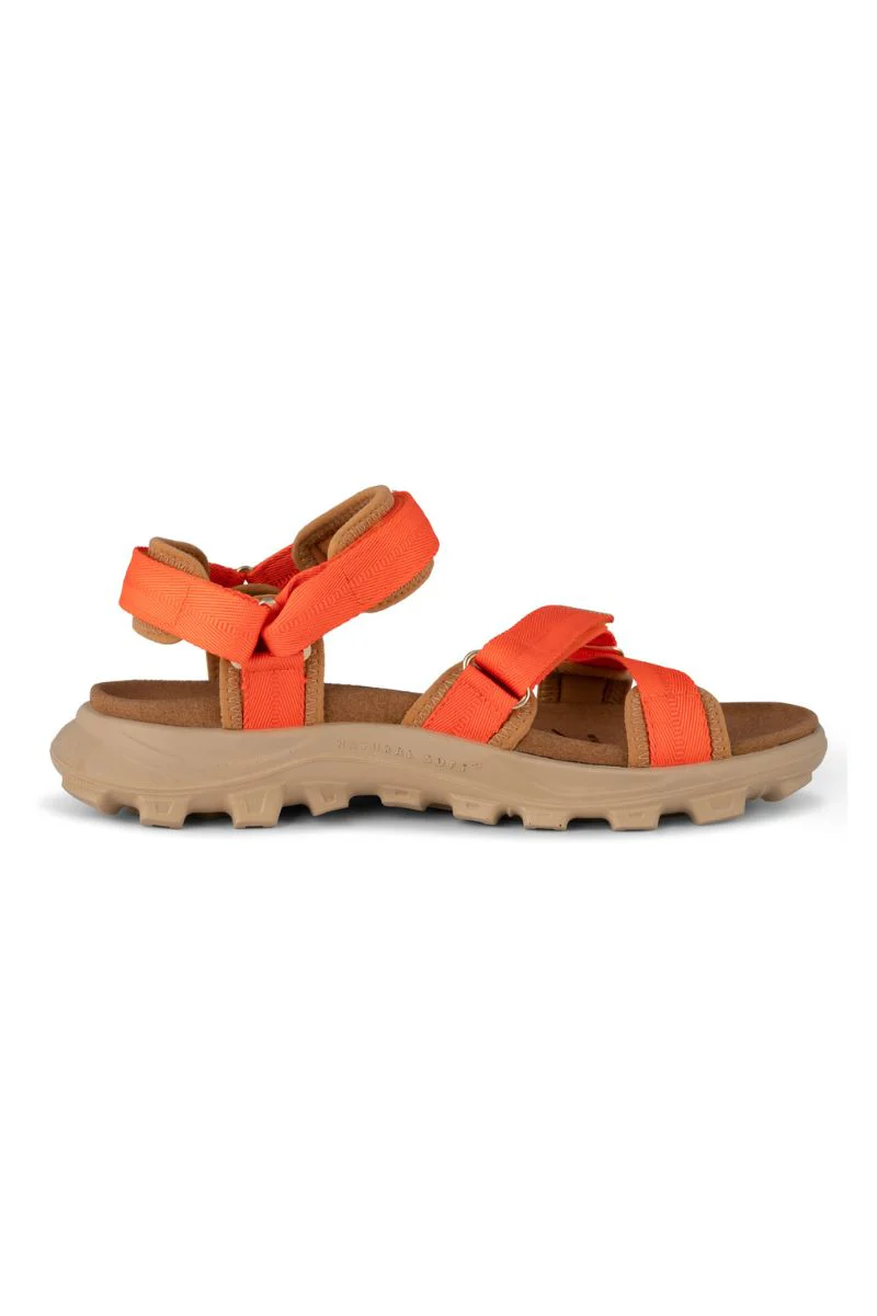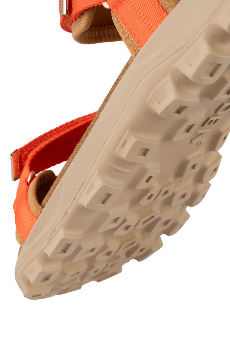 Vandre-inspireret sandal med en robust track-sål og tre justerbare remme for en sikker pasform.