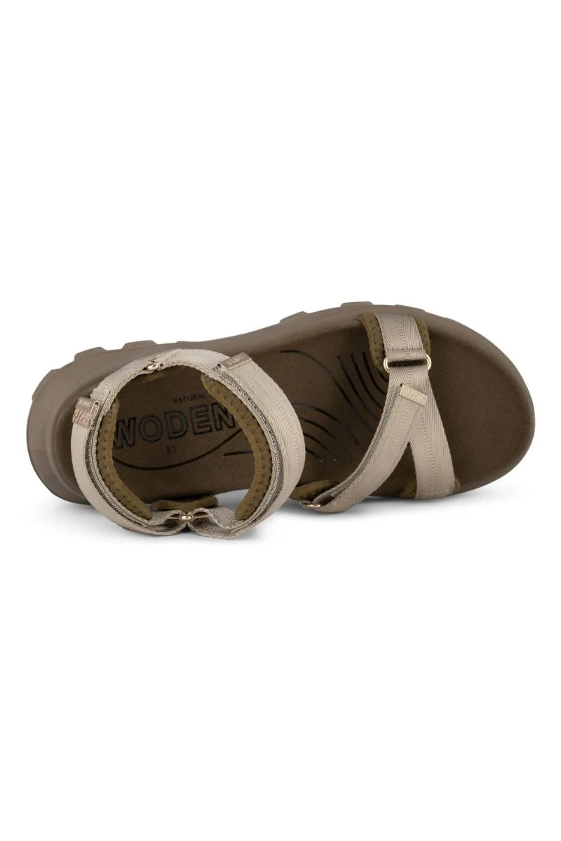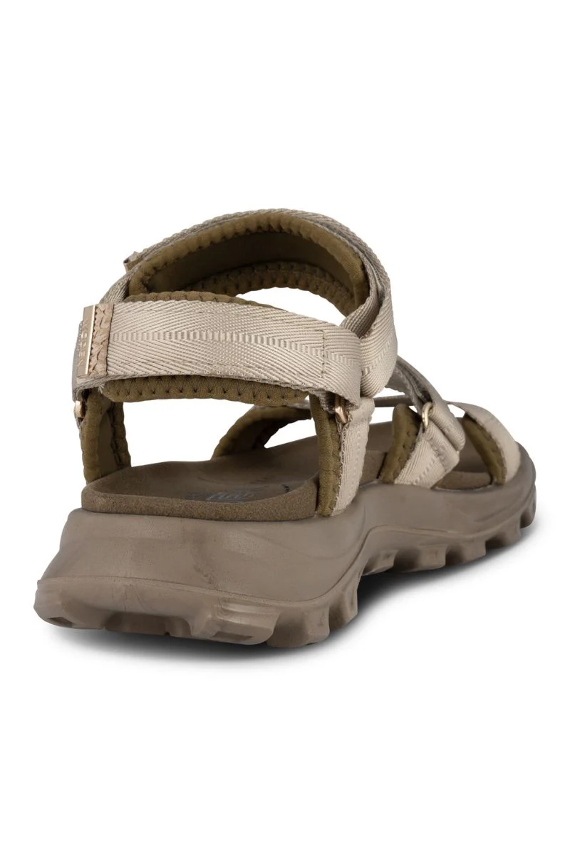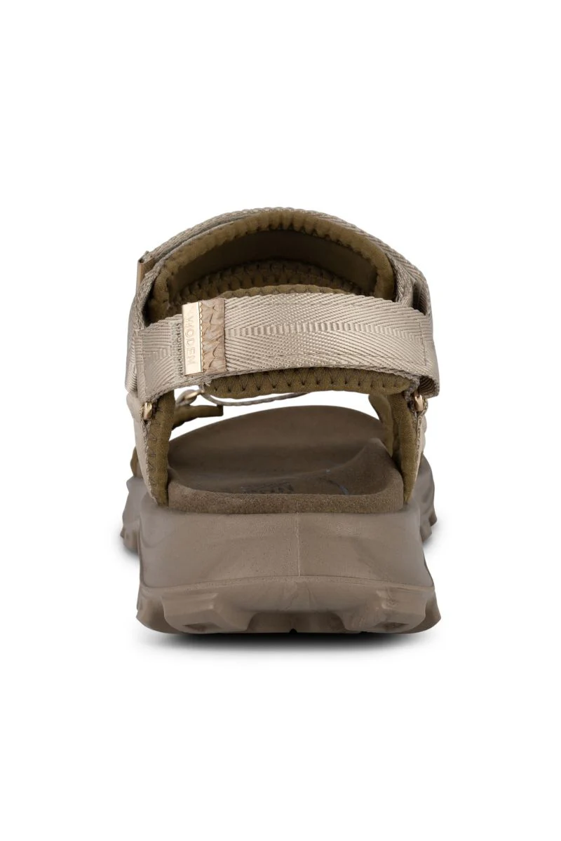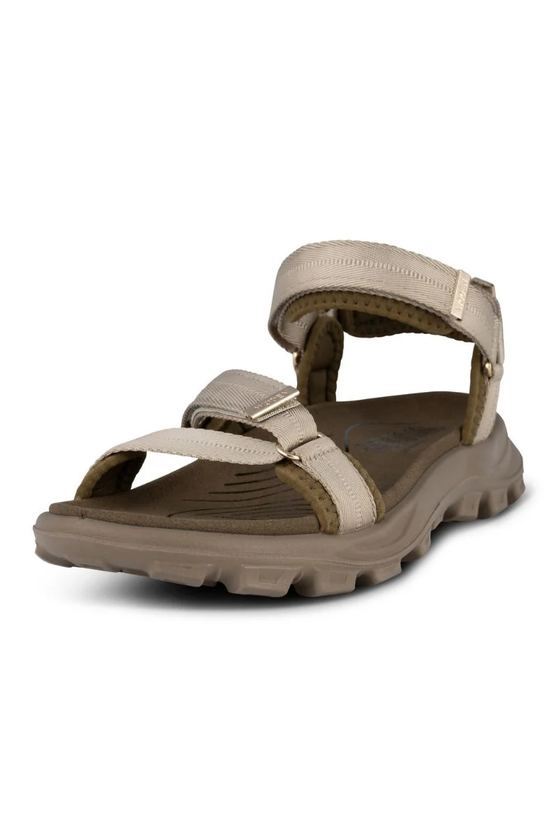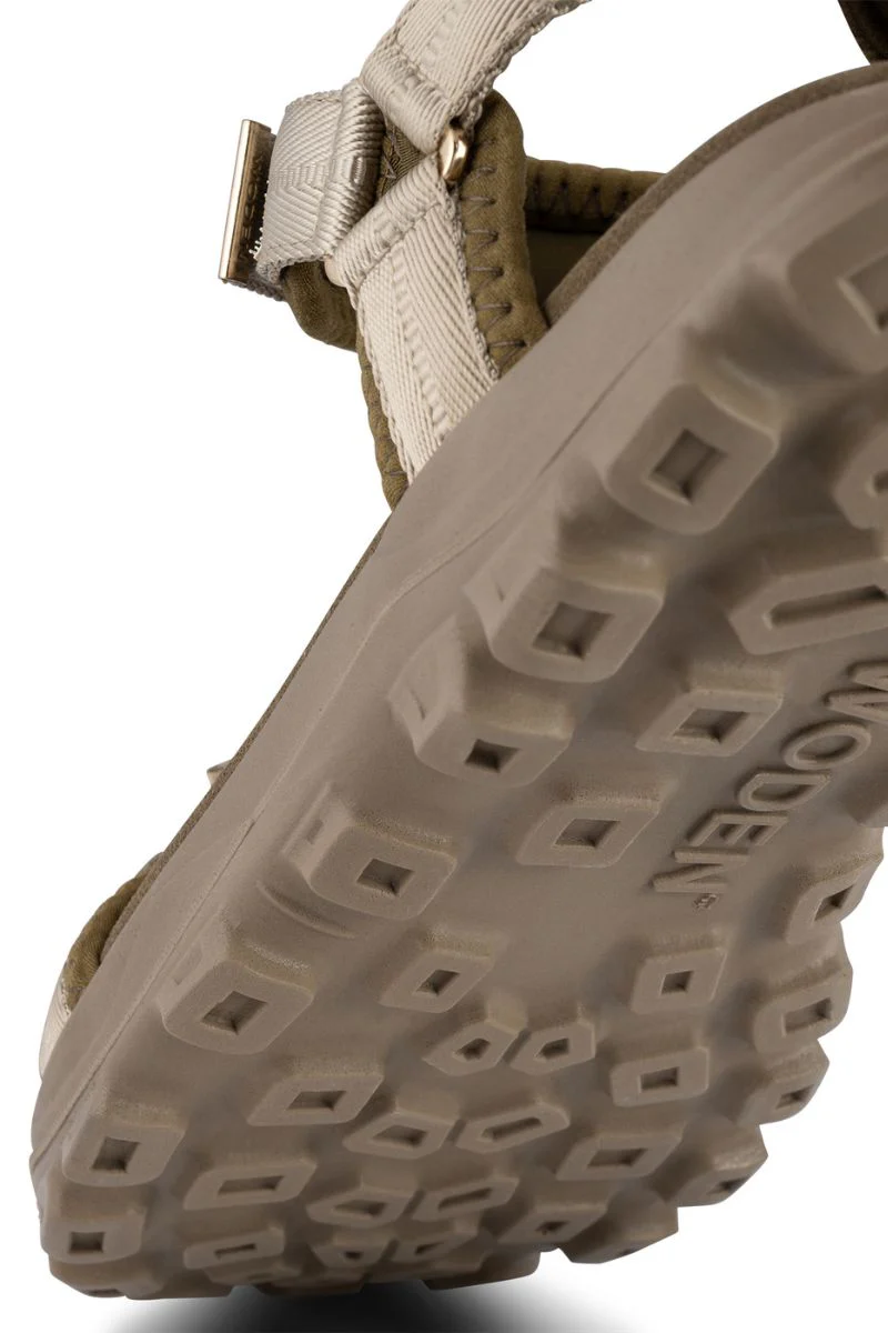 Vandre-inspireret sandal med en robust track-sål og tre justerbare remme for en sikker pasform.
