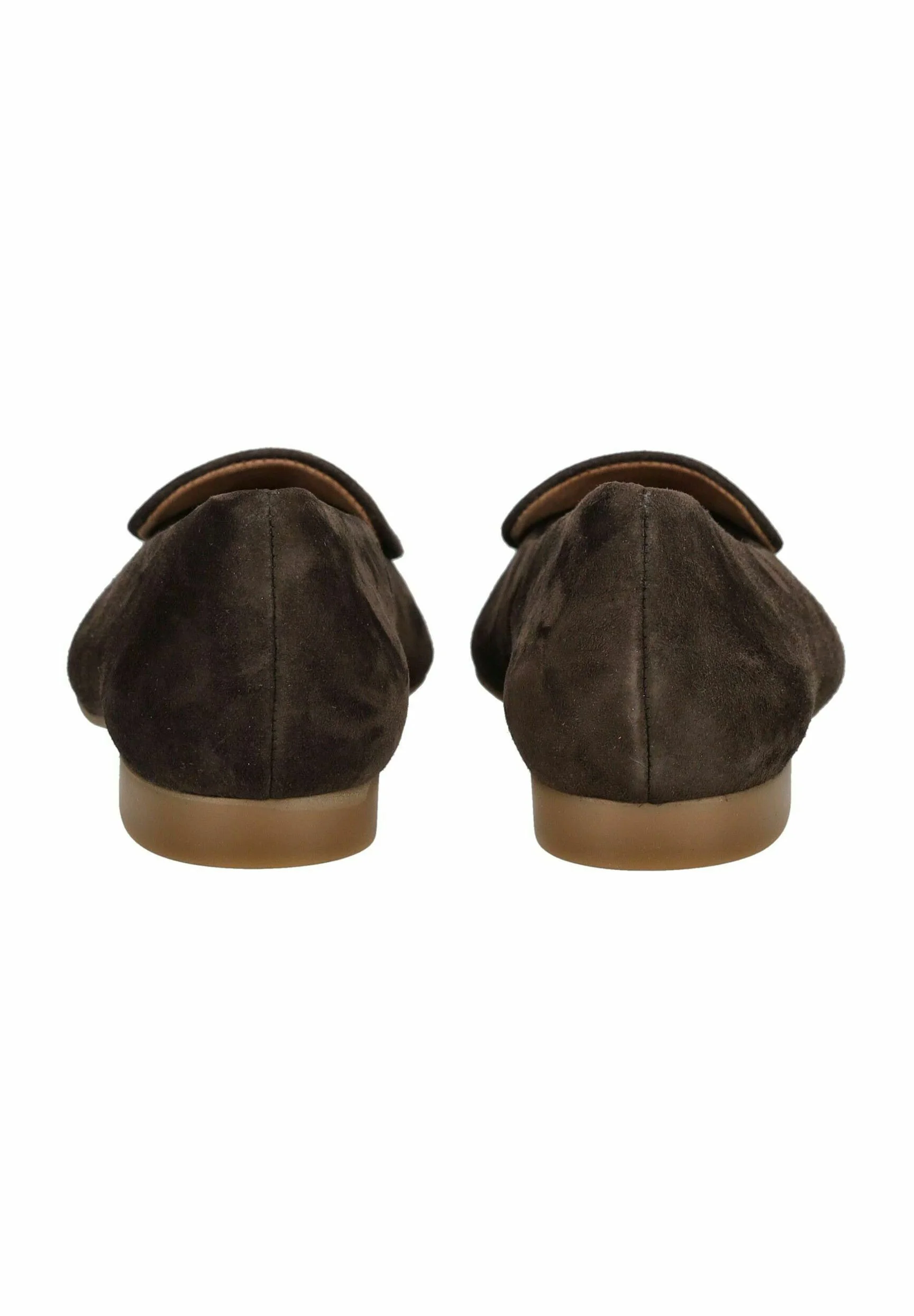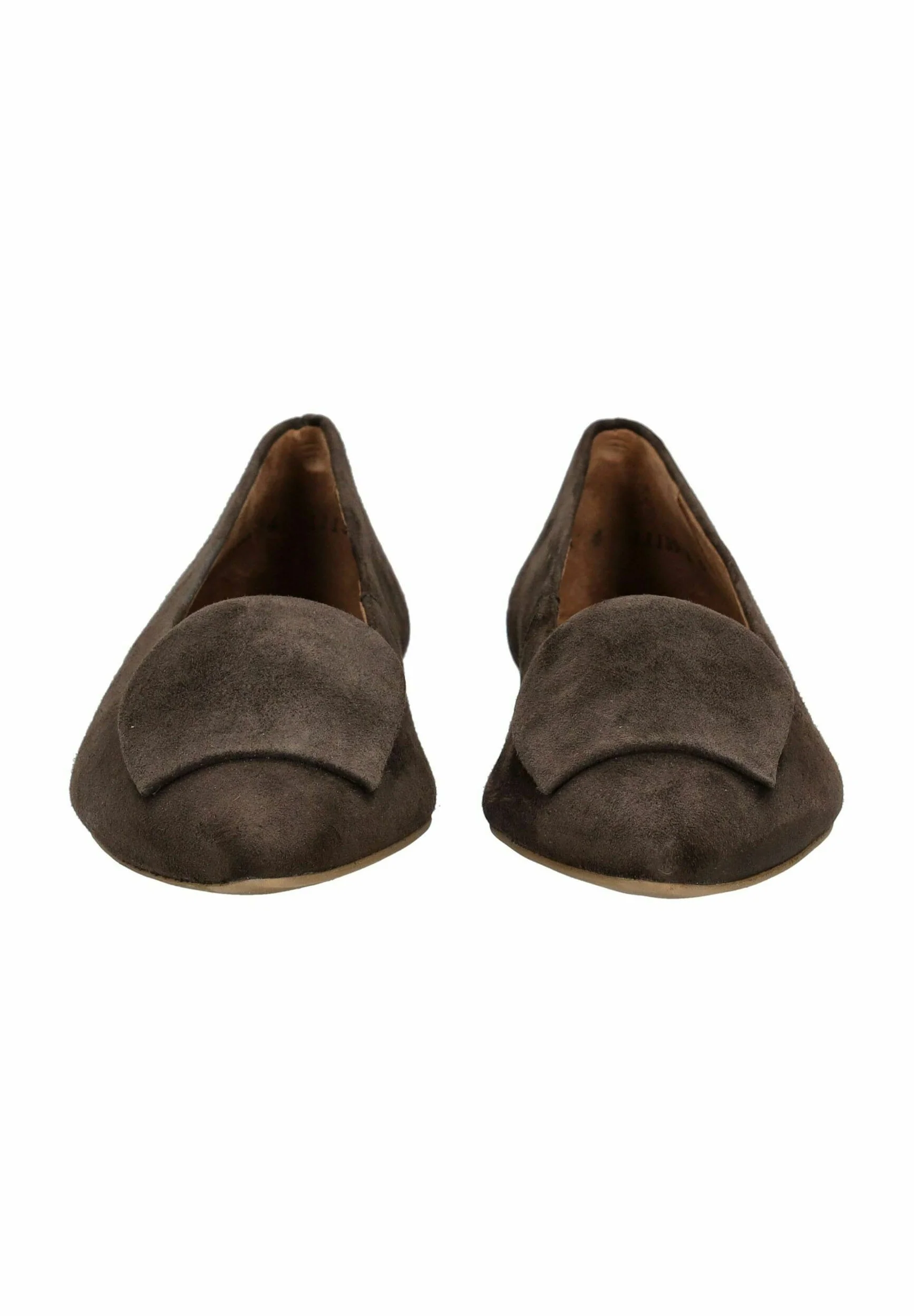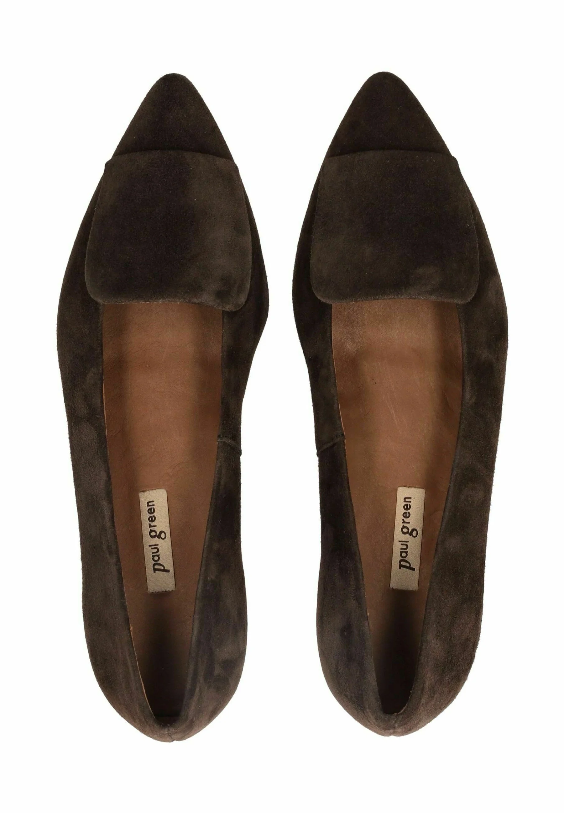 Flot og elegant ballerina i mørk brun fra Paul Green. Lavet i meget blød ruskind. Opbygget med svangstøtte. Perfekt til både hverdag og fest.