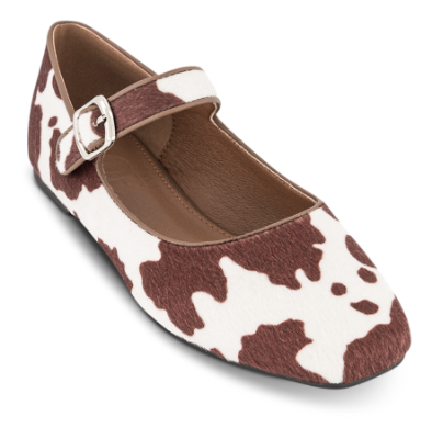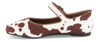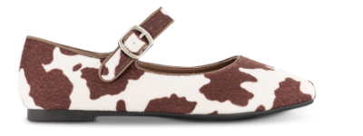 Sød nyhed fra vores NOË kollektion i farven cow - Modellen er Mary Jane inspireret og meget fin, feminin og sød til både bukser og kjole. Man spænder skoen med et lille sølv metal. Der er en blød gummisål. Overmaterialet er tekstil og indeni syntet.