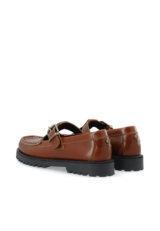 Super cool Mary Jane look sko fra Cashott. Det klassike Mary Jane look er her fortolket til en ny udgave. Modellen har massere detaljer så som, det fine spænde og tydelige sygninger. Skoen er lavet i en lækker læder med gummisåler. Den er almindelig i størrelsen og med en hælhøjde på ca. 3 cm.