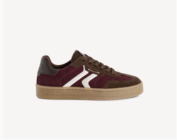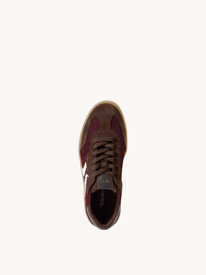 Smart sneakers fra Tamaris i burdeauxrøde og brune nuancer.