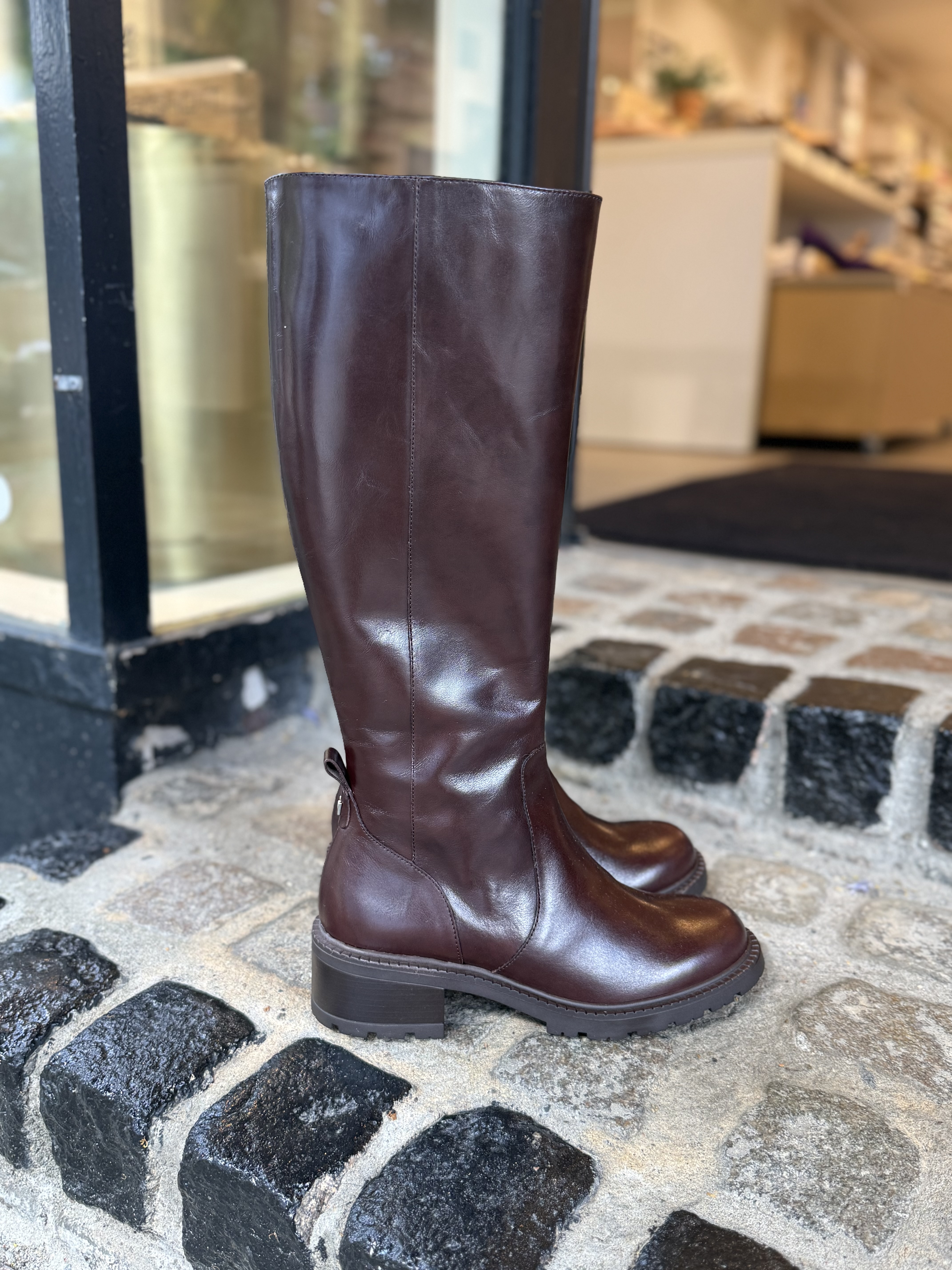 Støvlen er i mørkebrun skind med dem smukkeste glød.