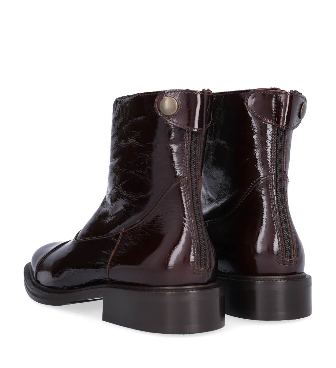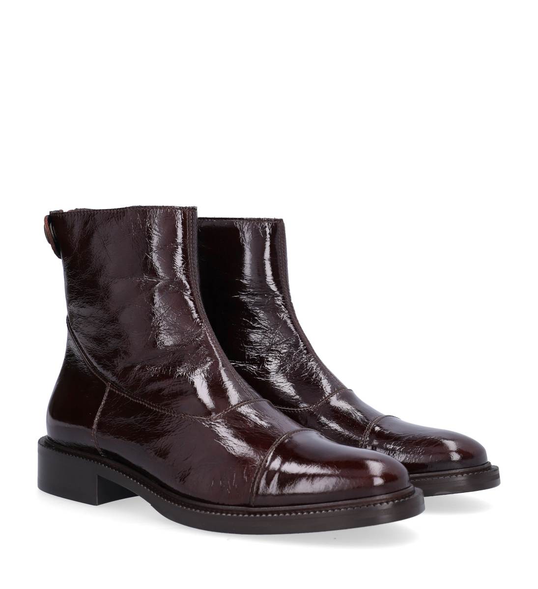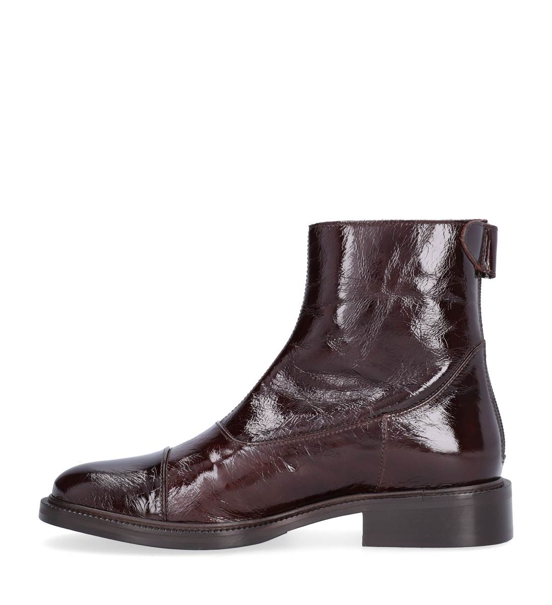 Støvlen er lavet i glat skind med en rund tå, i den smukkeste kastanje-bordeaux brune farve, som er en klassiker i efteråret.