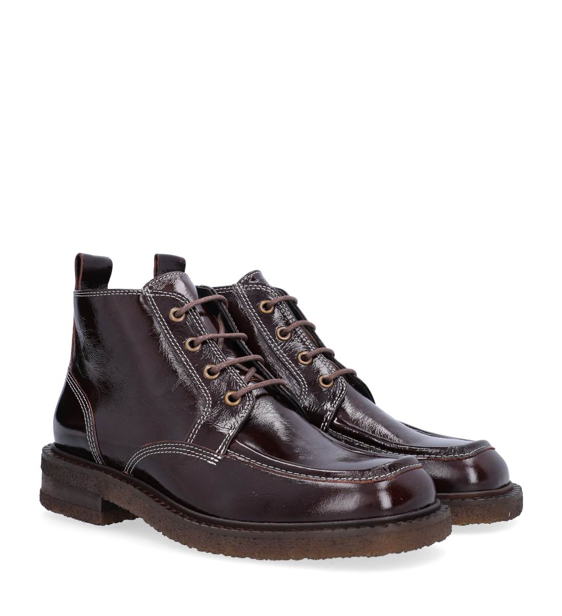 Støvlen her er med snøre, så den kan spændes godt til foden. Den er i skind med en firkantet snude. Derudover er den dekoreret med hvide sygninger. Hvilket bare gør dem super cool, perfekt til efterårs garderoben.