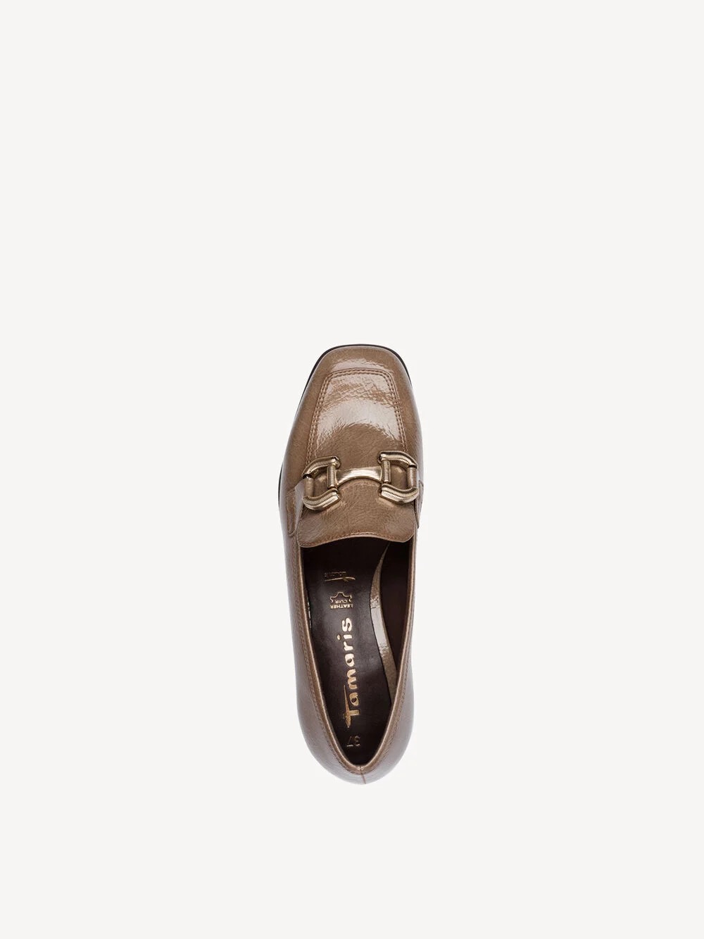 Tamaris loafers til dame i beige farvede lak. Denne model er skabt til den klassiske kvinde, der sætter pris på det klassiske og kvalitet.
