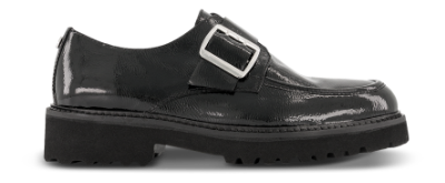 Det sorte lak look og sølv spænde henover foden giver den et virkelig sejt look, sammen med den lidt chunky sål.