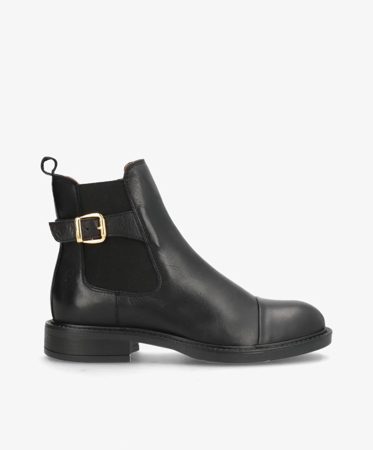 Støvlen er lavet i blødt, sort læder, som giver et eksklusivt look. Det karakteristiske chelsea look fuldendes med et fint gyldent spænde og elastik i siden, som både giver fleksibilitet og et feminint udtryk.