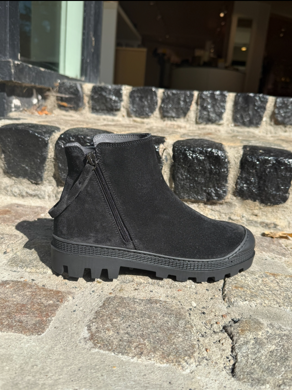 Kort støvle med lynlås på ydersiden. Sålen er i gummi, som gør den ekstra slidstærk og holdbar og støvlen er lavet i den blødeste kalveskind.