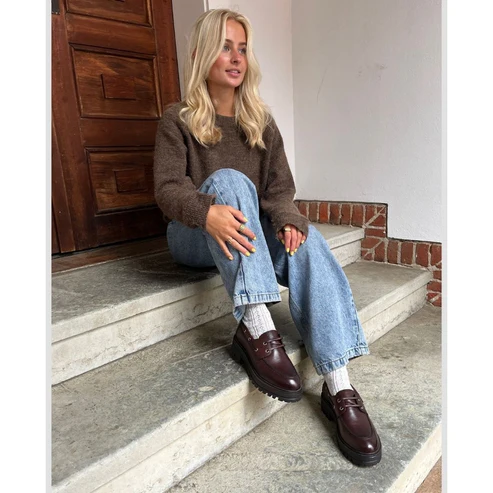 Skoen har en elegant og samtidig rå silhuet, der kombinerer heritage-inspiration med nutidens komfort og kant. Den kraftige sål giver godt fodfæste og et stilfuldt løft, imens den bløde indersål med sikrer komfort dagen lang – perfekt til både hverdag og workwear-stil.